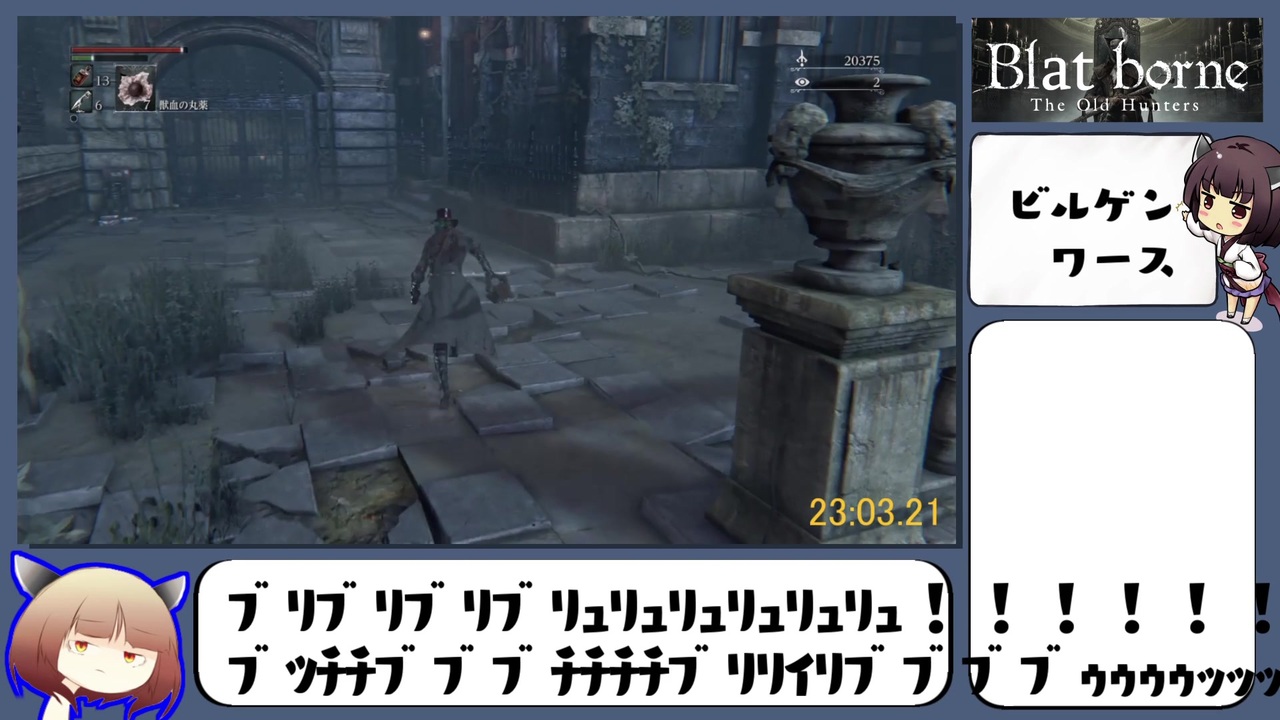<span style="color: #000000; font-size: 14px;">禁域の森~メンシスの悪夢まで</span><br><br><a href="#" class="seekTime" data-seekTime="12:05" onclick="seekNicoPlayer('#12:05'); return false;">#12:05</a>に流れている映像はBloodborne The Old Hunters TGS2015トレーラー<br><a href="https://www.youtube.com/watch?v=WDuVK4J2hE8" target="_blank" rel="noopener nofollow">https://www.youtube.com/watch?v=WDuVK4J2hE8</a><br><br><span style="color: #000000; font-size: 14px;">動画紹介:</span><a href="https://www.nicovideo.jp/watch/sm36489897" class="watch">sm36489897</a><br><span style="color: #000000; font-size: 14px;">本動画では解説していないヤーナムの影棒立ちバグを紹介しています。<br><br>お借りした素敵な立ち絵、素材は</span>コンテンツツリーに記載しました。<br><br>Q:解説のフォントは何?<br>A:「ベビポップ」を使いました。<br><br>5/28追記1:沢山の広告アリガトナス!(激遅)広告者様は次パートで改めて紹介させていただきます。<br>5/28追記2: <s>PC故障の為次の投稿が未定になります。</s>楽しみにしてくださっている視聴諸兄には申し訳ないです。<br>7/27追記3:PCなおりました。編集データがおじゃんになったので<span style="color: #000000; font-size: 14px;">8月末投稿を目標に作ります。<br><br>・RTAパート1集 </span><span style="color: #006699; font-size: 14px;"><a href="https://www.nicovideo.jp/mylist/69425976" target="_blank" rel="noopener">mylist/69425976</a></span><br><br><a href="https://www.nicovideo.jp/watch/sm36605470" class="watch">sm36605470</a>:前 次:<a href="https://www.nicovideo.jp/watch/sm37444773" class="watch">sm37444773</a>