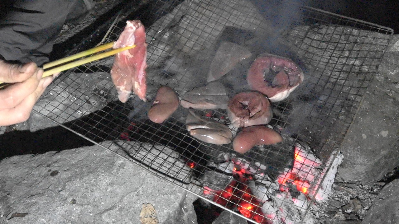 まだ日没になってなかったので皮なめしの続きをしてから夕飯にします。<br>最初は残っているスープの中に採取した内臓を入れて煮込んで食べようかと思っていましたが生肉の後入れはさすがに美味しくならなそうだったので従来通りの焼肉にしました。<br><br>前回→<span style="color: #000000; font-size: 14px;"><a href="https://www.nicovideo.jp/watch/sm36836215" class="watch">sm36836215</a></span><br>次回→<a href="https://www.nicovideo.jp/watch/sm36902195" class="watch">sm36902195</a><br>狩猟生活まとめ→<a href="https://www.nicovideo.jp/mylist/42591837" target="_blank" rel="noopener">mylist/42591837</a><br><br>他の動画たち→<a href="https://www.nicovideo.jp/user/1503923/mylist" target="_blank" rel="noopener nofollow">https://www.nicovideo.jp/user/1503923/mylist</a><br>ネイチャー・ポケット(コミュニティ)→co384971<br>チャンネル→<a href="https://ch.nicovideo.jp/nature-pocket" target="_blank" rel="noopener">ch.nicovideo.jp/nature-pocket</a><br>youtube版→<a href="https://youtu.be/fJer_hb4SgI" target="_blank" rel="noopener nofollow">https://youtu.be/fJer_hb4SgI</a><br>Twitter→<a href="https://twitter.com/kamegorou2525" target="_blank" rel="noopener nofollow">https://twitter.com/kamegorou2525</a>