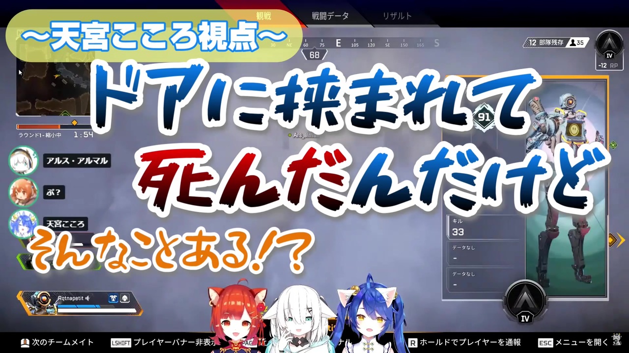 初めて見た<br><br>●本編<br> 【APEX】ランクマあみゃぷてまるまるまーるいぷてみゃ【天宮こころ/ラトナ・プティ/アルス・アルマル】<br> <a href="https://www.youtube.com/watch?v=aCrwAze_pz0&t=4840s" target="_blank" rel="noopener nofollow">https://www.youtube.com/watch?v=aCrwAze_pz0&t=4840s</a><br> 【APEX】3人でランクがんばろ!!!!!【ラトナ・プティ/アルス/天宮/にじさんじ】<br> <a href="https://www.youtube.com/watch?v=6DwehUYAK4k" target="_blank" rel="noopener nofollow">https://www.youtube.com/watch?v=6DwehUYAK4k</a><br> 【APEX】ぷてちとあみゃまあとあぺぺぺぺ【アルス・アルマル/にじさんじ】<br> <a href="https://www.youtube.com/watch?v=ggHM05DqA5g" target="_blank" rel="noopener nofollow">https://www.youtube.com/watch?v=ggHM05DqA5g</a><br><br>●天宮こころ<br> youtubeチャンネル<br> <a href="https://www.youtube.com/channel/UCkIimWZ9gBJRamKF0rmPU8w" target="_blank" rel="noopener nofollow">https://www.youtube.com/channel/UCkIimWZ9gBJRamKF0rmPU8w</a><br> twitter<br> <a href="https://twitter.com/amamiya_kokoro" target="_blank" rel="noopener nofollow">https://twitter.com/amamiya_kokoro</a><br><br>●ラトナ・プティ<br> youtubeチャンネル<br> <a href="https://www.youtube.com/channel/UCIG9rDtgR45VCZmYnd-4DUw" target="_blank" rel="noopener nofollow">https://www.youtube.com/channel/UCIG9rDtgR45VCZmYnd-4DUw</a><br> twitter<br> <a href="https://twitter.com/ratna_petit" target="_blank" rel="noopener nofollow">https://twitter.com/ratna_petit</a><br><br>●アルス・アルマル<br> youtubeチャンネル<br> <a href="https://www.youtube.com/channel/UCdpUojq0KWZCN9bxXnZwz5w" target="_blank" rel="noopener nofollow">https://www.youtube.com/channel/UCdpUojq0KWZCN9bxXnZwz5w</a><br> twitter<br> <a href="https://twitter.com/ars_almal" target="_blank" rel="noopener nofollow">https://twitter.com/ars_almal</a><br><br>●投稿した動画<br> vtuberに関する様々な動画をあげてます!<br> <a href="https://www.nicovideo.jp/my/mylist/#/68294851" target="_blank" rel="noopener nofollow">https://www.nicovideo.jp/my/mylist/#/68294851</a><br> 意見,要望,感想はこちらまで<br> <a href="https://twitter.com/takutekutakut" target="_blank" rel="noopener nofollow">https://twitter.com/takutekutakut</a>