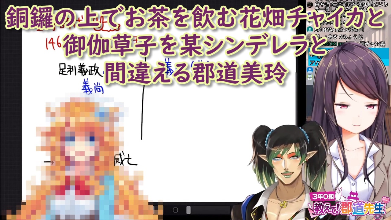浦島太郎「かなり恐怖を感じた」<br>一寸法師「誠に遺憾である」<br><br>本家参考動画<br>・郡道美玲<br>【授業/歴史⑦】室町時代!地味とは言わせない!熟女マニアに天魔の将軍!?with花畑チャイカ【#教えて郡道先生】<br><a href="https://youtu.be/MYh8tEDEJhY" target="_blank" rel="noopener nofollow">https://youtu.be/MYh8tEDEJhY</a><br><br>参考チャンネル<br>・郡道美玲<br><a href="https://www.youtube.com/channel/UCeShTCVgZyq2lsBW9QwIJcw" target="_blank" rel="noopener nofollow">https://www.youtube.com/channel/UCeShTCVgZyq2lsBW9QwIJcw</a><br>・花畑チャイカ<br><a href="https://www.youtube.com/channel/UCsFn_ueskBkMCEyzCEqAOvg" target="_blank" rel="noopener nofollow">https://www.youtube.com/channel/UCsFn_ueskBkMCEyzCEqAOvg</a><br><br>参考元主Twitter<br>・郡道美玲<br><a href="https://twitter.com/g9v9g_mirei" target="_blank" rel="noopener nofollow">https://twitter.com/g9v9g_mirei</a><br>・花畑チャイカ<br><a href="https://twitter.com/ZulmIhP1nlMOT5y" target="_blank" rel="noopener nofollow">https://twitter.com/ZulmIhP1nlMOT5y</a><br><br>ニコニコのダイコンマンリスト<br>「バーチャルYouTuberシリーズ」↓<br><a href="https://www.nicovideo.jp/mylist/62551838" target="_blank" rel="noopener">mylist/62551838</a><br>「バーチャルYouTuberシリーズ2」↓<br><a href="https://www.nicovideo.jp/mylist/67858437" target="_blank" rel="noopener">mylist/67858437</a><br><br>YouTubeのダイコンマンチャンネル<br><a href="https://www.youtube.com/channel/UCkpfR11cG2kk9KTJijWCJfg" target="_blank" rel="noopener nofollow">https://www.youtube.com/channel/UCkpfR11cG2kk9KTJijWCJfg</a><br><br>ダイコンマンのTwitter<br><a href="https://twitter.com/Daikon_Man_V" target="_blank" rel="noopener nofollow">https://twitter.com/Daikon_Man_V</a>