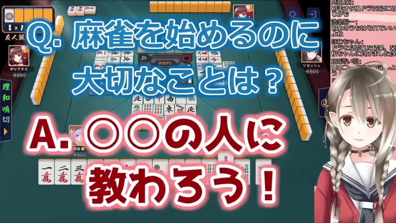 <span style="color: #000000; font-size: 14px;">見どころ!Vtuberマイリスト→</span><span style="color: #006699; font-size: 14px;"><a href="https://www.nicovideo.jp/mylist/68418234" target="_blank" rel="noopener">mylist/68418234</a></span><br><br>▼元動画様<br>【雀魂】麻雀を楽しく打つ方法教えます!【初心者講座】<br><a href="https://youtu.be/QOwJYahnDeg" target="_blank" rel="noopener nofollow">https://youtu.be/QOwJYahnDeg</a><br><br>【切り抜き】20分でわかる!初心者麻雀講座【Vtuber】<br><a href="https://youtu.be/eesuXarJlbw" target="_blank" rel="noopener nofollow">https://youtu.be/eesuXarJlbw</a><br><br>▼チャンネル<br>楠栞桜 / Kusunoki Sio <a href="https://t.co/mWJ3i24BWc?amp=1" target="_blank" rel="noopener nofollow">https://t.co/mWJ3i24BWc?amp=1</a><br><br>日に日に麻雀を始めるVtuberさんが増えてきてますね。<br>楠さん影響も大きいと思います!!<br>私も、最低限打てるように練習していきたいと思います。<br><br>かにさん、ひや水さん、yukkeさん、ttrustさん、ちほむぎさん、YOUさん、uheuheさん、Orpheusさん、一任さん、もふ狐さん、Macky☆さん、myoさん、広告ありがとうございました‼