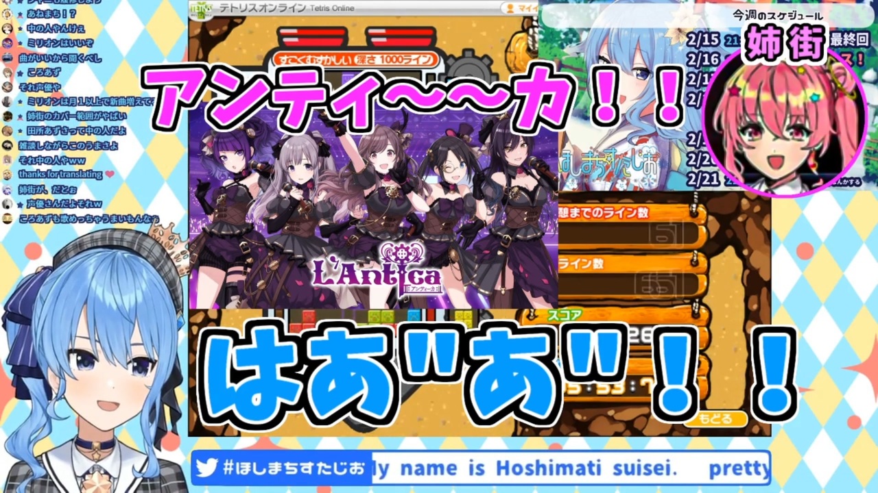 唐突に現れる姉街とのやり取りまとめ<br>Twitter投稿分と入り切らなかったものを再編集<br><br>【テトリス99】1VS98!?リベンジマッチ!【ホロライブ/星街すいせい】<br><a href="https://youtu.be/rsdE8Jpc338" target="_blank" rel="noopener nofollow">https://youtu.be/rsdE8Jpc338</a><br>バレンタイン雑談!ってなにするの?□【ホロライブ/星街すいせい】<br><a href="https://youtu.be/wgk9-hAqNGo" target="_blank" rel="noopener nofollow">https://youtu.be/wgk9-hAqNGo</a><br>【Tetris Online Poland】ほりテト1000ライン消し終わるまで雑談part3【ホロライブ / 星街すいせい】<br><a href="https://youtu.be/AXFF_0cuDJ0" target="_blank" rel="noopener nofollow">https://youtu.be/AXFF_0cuDJ0</a><br>【ヴァンガードZERO】新クラン登場!シャドパラRRRを求めてガチャ回す【ホロライブ / 星街すいせい】<br><a href="https://youtu.be/IqSQsCbq2_8" target="_blank" rel="noopener nofollow">https://youtu.be/IqSQsCbq2_8</a><br>【雑談+テトリス99】雑談のついででテトリスやります【ホロライブ / 星街すいせい】<br><a href="https://youtu.be/PpG1c6yYT4o" target="_blank" rel="noopener nofollow">https://youtu.be/PpG1c6yYT4o</a><br><br><br><br><span style="color: rgba(0, 0, 0, 0.87); font-size: 15px;">Youtube : Suisei Channel</span><br><a href="https://www.youtube.com/channel/UC5CwaMl1eIgY8h02uZw7u8A" target="_blank" rel="noopener nofollow">https://www.youtube.com/channel/UC5CwaMl1eIgY8h02uZw7u8A</a><br><br>Twitter : @suisei_hosimati<br><a href="https://twitter.com/suisei_hosimati" target="_blank" rel="noopener nofollow">https://twitter.com/suisei_hosimati</a>