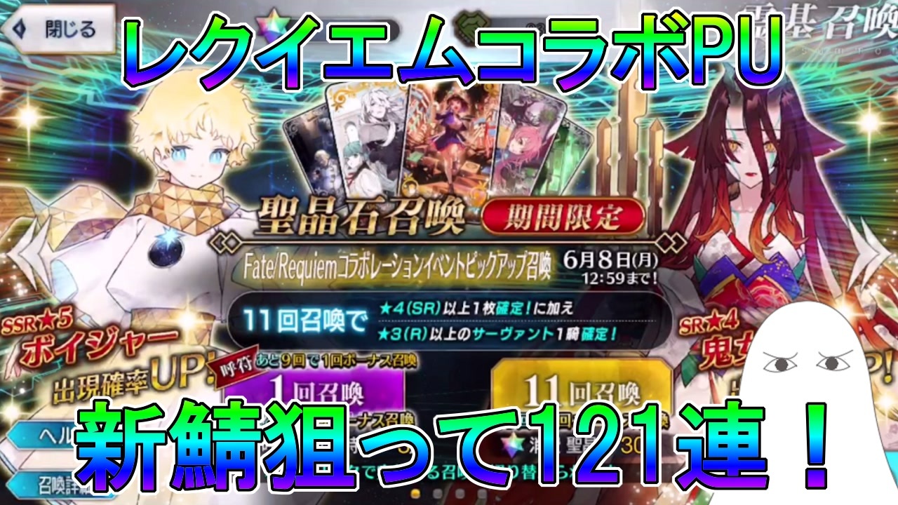 <span style="color: rgba(0, 0, 0, 0.87); font-size: 15px;">レクイエムコラボPUガチャをやってみました!<br><br>動画についてリクエスト等ありましたらTwitter等にご連絡頂ければ可能な限り検討致します。<br><br>お仕事など御用の際には下記アドレスまで宜しくお願いします。<br>生放送はMildomで行っています。<br><br>連絡先メールアドレス → cecimesfr@gmail.com<br>Twitter → <a href="https://twitter.com/Ceci_startnow" target="_blank" rel="noopener nofollow">https://twitter.com/Ceci_startnow</a><br>Mildom → <a href="https://www.mildom.com/10682716" target="_blank" rel="noopener nofollow">https://www.mildom.com/10682716</a><br><br>今回の動画の音楽は「魔王魂様」「H/MIX GALLERY 様」「甘茶の音楽工房様」からお借りしています</span><br><br>前回の動画→<a href="https://www.nicovideo.jp/watch/sm36909262" class="watch">sm36909262</a> 次の動画→<br><br>2020年FGOシステム動画リスト→<a href="https://www.nicovideo.jp/mylist/67846743" target="_blank" rel="noopener">mylist/67846743</a><br>システム考察で活用する動画リスト→<a href="https://www.nicovideo.jp/mylist/66880621" target="_blank" rel="noopener">mylist/66880621</a>