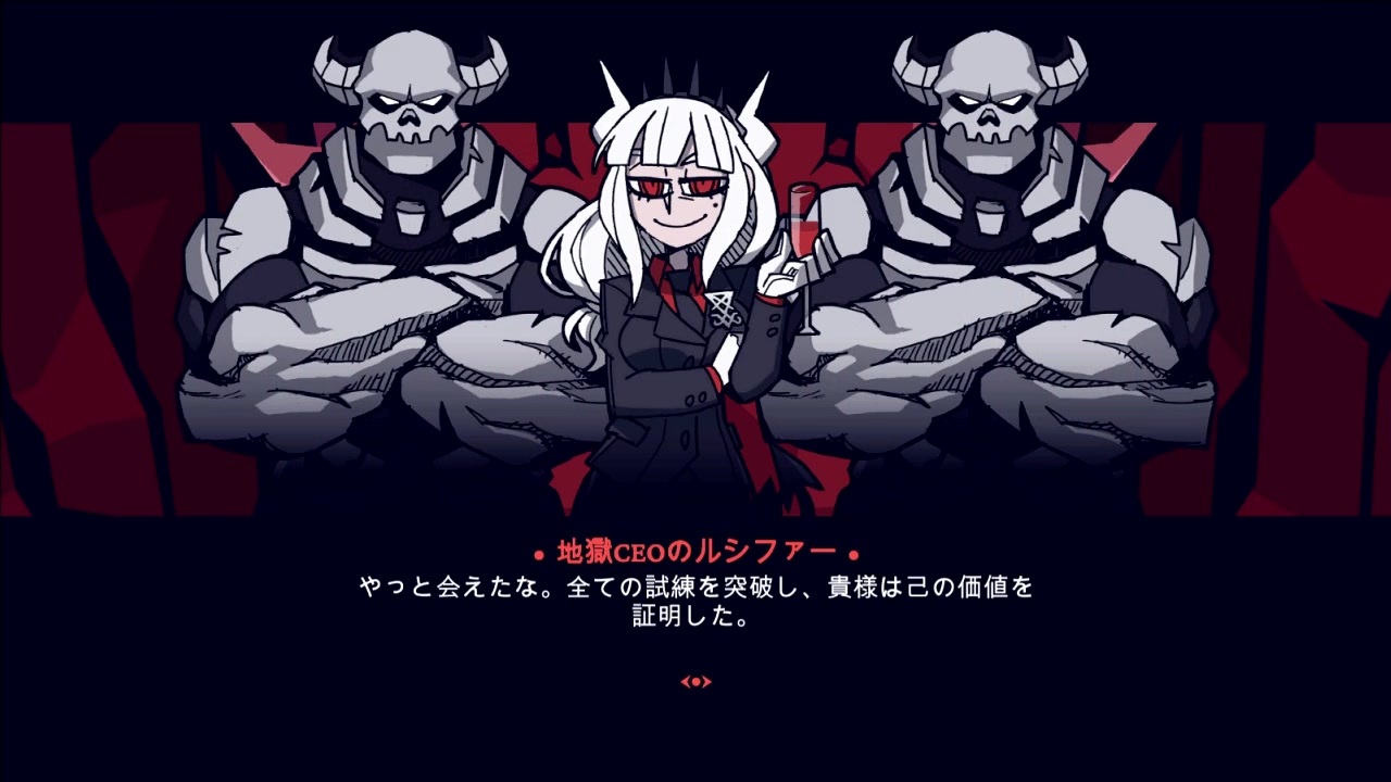 試聴後に翻訳された方の後記を読むとより楽しめますよ。↓<br><a href="https://note.com/kagerou01gata/n/n93c06b21859b" target="_blank" rel="noopener nofollow">https://note.com/kagerou01gata/n/n93c06b21859b</a><br><br><br>**********************************************<br><br><br>Helltaker [Steam] <a href="https://store.steampowered.com/app/1289310/Helltaker/" target="_blank" rel="noopener nofollow">https://store.steampowered.com/app/1289310/Helltaker/</a><br><br>日本語化MOD [Steamコミュニティ] <a href="https://steamcommunity.com/app/1289310/discussions/1/4666237625647679747/" target="_blank" rel="noopener nofollow">https://steamcommunity.com/app/1289310/discussions/1/4666237625647679747/</a><br><br><br>**********************************************<br><br>◆今までのシリーズ◆<br><br>[Hollow Knight] <a href="https://www.nicovideo.jp/series/67422" target="_blank" rel="noopener">series/67422</a><br><br>[Cuphead] <a href="https://www.nicovideo.jp/series/67513" target="_blank" rel="noopener">series/67513</a><br><br>[Minit] <a href="https://www.nicovideo.jp/series/67514" target="_blank" rel="noopener">series/67514</a><br><br>[Feudal Alloy] <a href="https://www.nicovideo.jp/series/67515" target="_blank" rel="noopener">series/67515</a><br><br>[momodora-月下のレクイエム-] <a href="https://www.nicovideo.jp/series/67511" target="_blank" rel="noopener">series/67511</a><br><br>[Pikuniku] <a href="https://www.nicovideo.jp/series/102861" target="_blank" rel="noopener">series/102861</a><br><br><br>【シリーズ】<a href="https://www.nicovideo.jp/series/129508" target="_blank" rel="noopener">series/129508</a><br><br>【前編】<a href="https://www.nicovideo.jp/watch/sm36928192" class="watch">sm36928192</a><br>