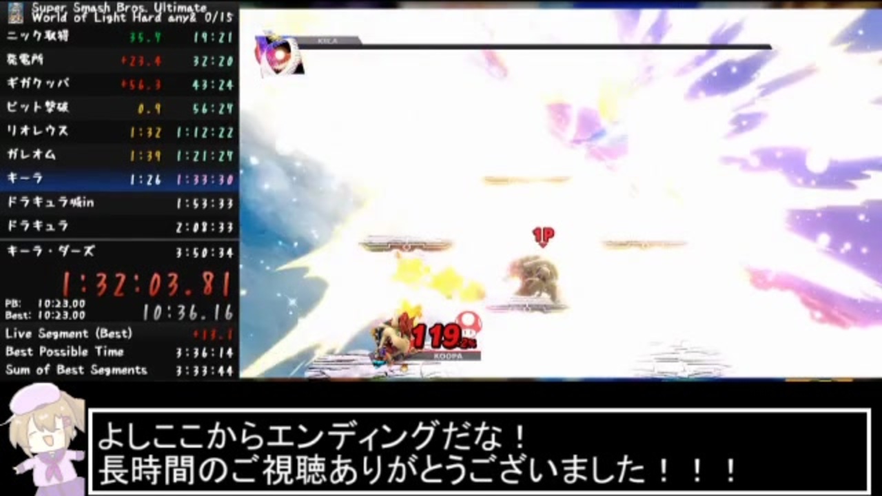 か…勝ったわ!<br>こうして深い理由など全くない、スピリッツ地獄は終わった。<br>※まだまだ続きます。<br>動画投稿時点で、Speedrun.com上の記録にて世界一位の記録になります。<br><br>計測開始:「むずかしい」を選択した瞬間<br>計測終了:キーラ&ダーズ戦で最後の攻撃を当てた瞬間<br>使用ハード:Nintendo Switch<br><br>割とガバが多いです。<br><br><a href="https://www.nicovideo.jp/watch/sm36921744" class="watch">sm36921744</a>←前 次→<a href="https://www.nicovideo.jp/watch/sm36947216" class="watch">sm36947216</a><br>Part1→<a href="https://www.nicovideo.jp/watch/sm36885819" class="watch">sm36885819</a><br><br>配信コミュ→co3812574<br>Twitch→kmbyukarin<br><追記><br>配信版はこちら。<br>【<a href="https://www.twitch.tv/videos/618875878" target="_blank" rel="noopener nofollow">https://www.twitch.tv/videos/618875878</a> 】<br><br>Twitter→@khrn_love<br><br>立ち絵はこはる(Twitter:@koharu_Mykl)様に頂きました。