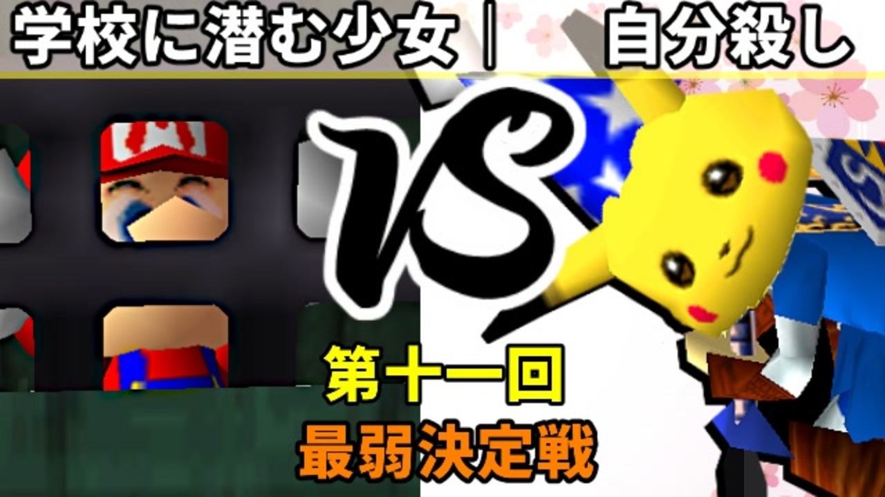 <span style="color: rgba(0, 0, 0, 0.87); font-size: 15px;">第十一回、これにて閉幕!!<br>※どちらが【負けるか】アンケ結果(Twitter調べ) <br>学校に潜む少女(母、チェントゥリ) 55% VS 自分殺し(黒光、味方殺し) 45%</span><br><br><span style="color: #0000ff; font-size: 13px;">※スマブラCPUトナメ実況wiki→</span> <a href="https://wiki3.jp/64cpu_P" target="_blank" rel="noopener nofollow">https://wiki3.jp/64cpu_P</a><br><br><span style="color: #ff0000; font-size: 24px;"><strong>次→</strong></span>【<a href="https://www.nicovideo.jp/watch/sm36937988" class="watch">sm36937988</a><span style="color: rgba(0, 0, 0, 0.87); font-size: 15px;">】※珍好プレー集</span><br><br>前【<a href="https://www.nicovideo.jp/watch/sm36927072" class="watch">sm36927072</a>】 一回戦第一試合【<a href="https://www.nicovideo.jp/watch/sm36842845" class="watch">sm36842845</a>】<br><span style="color: #ff0000; font-size: 14px;"><strong>【第十一回】64スマブラCPUトナメマイリスト</strong></span><span style="color: #000000; font-size: 14px;">【mylist/</span>68357741<span style="color: #000000; font-size: 14px;">】</span><br>スマブラCPUトナメ実況part1まとめ【<a href="https://www.nicovideo.jp/mylist/60846861" target="_blank" rel="noopener">mylist/60846861</a>】<br>その他シリーズ【<a href="https://www.nicovideo.jp/mylist/12965027" target="_blank" rel="noopener">mylist/12965027</a>】<br><br><span style="color: #00bfff; font-size: 13px;"><strong>Twitter</strong></span>【<a href="https://twitter.com/niconicopppppp" target="_blank" rel="noopener nofollow">https://twitter.com/niconicopppppp</a> 】<br><span style="color: #ff4500; font-size: 13px;"><strong>チャンネル</strong></span>【<a href="https://ch.nicovideo.jp/p-desu" target="_blank" rel="noopener">ch.nicovideo.jp/p-desu</a>】