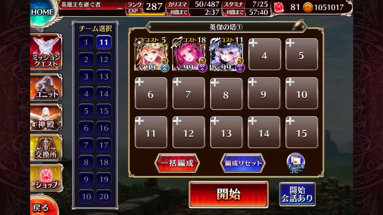 <span style="font-size: 24px;"><strong>うおおおおおおおおおっっ!!ミサッ!ミサッ!!</strong></span>(2回目)<br><br>前回(<a href="https://www.nicovideo.jp/watch/sm36952725" class="watch">sm36952725</a>)<span style="color: #ff0000;"><strong>ルヴェアS覚の「5人以下」にトークンが含まれない</strong></span>ことを知らずに攻略してましたorz<br>結果ラテリアを抜いたのにむしろ簡単になるという・・・。ミサの好感度150%は果たして意味あったのか()<br>まあでもこの階層でミサの株も爆上がりしたことですし、これから積極的に普段使いしていきたいですね。<br><br>・・・ていうかトークンが含まれないってSeesaaWiki見たら書いてました。やっぱり王子は字が(ry<br><br>好感度150%:ミサ、<span style="color: #999999;">ルフレ</span><br>所持バフ:☆6トゥアン、<span style="color: #999999;">☆6サナラ</span><br><br>アイギス動画 <a href="https://www.nicovideo.jp/mylist/66820173" target="_blank" rel="noopener">mylist/66820173</a><br><br>――――――――― 追記 ―――――――――<br>子供王子√が開拓されない限り結局クレープちゃんに負けちゃいそう?<br>ていうかそろそろ子供王子ほしいのでストミ半減をですね・・・<br><br>ちなみに英傑の幻影には人間属性がないので<span style="font-size: 18px;"><strong>ミサの特攻対象外</strong></span>です。人間特攻どこやったら刺さんねん。<br><br><span style="font-size: 16px;"><strong>更新しました→</strong></span><a href="https://www.nicovideo.jp/watch/sm37161790" class="watch">sm37161790</a>