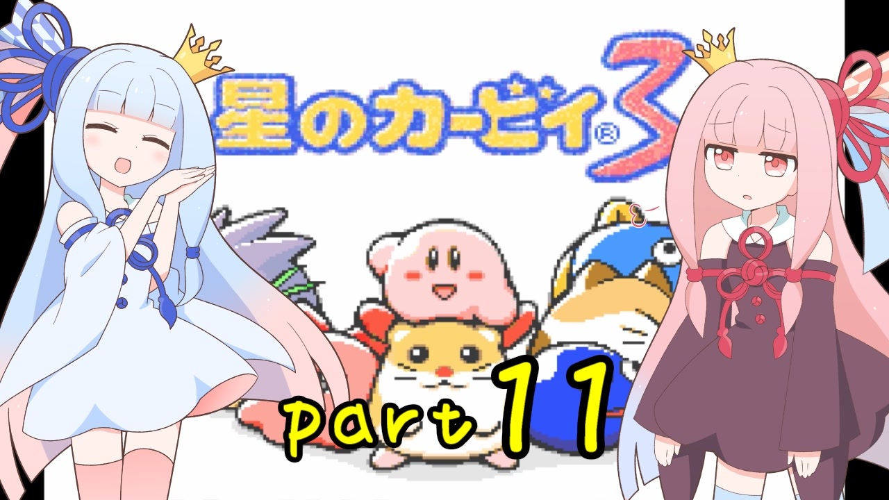 Voiceroid琴葉茜・葵によるゲーム実況動画です。<br>「星のカービィ3」⑪ 4-2~4-4<br><br>この動画は縛り無しの通常プレイで進みます。<br>ハートスターが取れなかった場合、動画の終わりのおまけパートにて回収します。<br>毎回たくさんの再生、コメント、マイリス、広告ありがとうございます。<br><br><span style="color: #ff0000; font-size: 16px;"><strong>8/1開催予定の同人即売会「ボイスコネクト」に参加いたします!</strong></span><br>この動画シリーズの琴葉姉妹+結月ゆかりさんのほのぼの日常本を持ってきます。<br>(作:ハムスタ(王冠)、絵:塵塚りんす)<br>当日はサークル「緋翠王室(ヒスイルーム)」にぜひ遊びに来てください!<br><br>前→<a href="https://www.nicovideo.jp/watch/sm36888240" class="watch">sm36888240</a> 次→<a href="https://www.nicovideo.jp/watch/sm37042596" class="watch">sm37042596</a> パート1→<a href="https://www.nicovideo.jp/watch/sm36351998" class="watch">sm36351998</a><br>カービィ3マイリスト→<a href="https://www.nicovideo.jp/mylist/67560790" target="_blank" rel="noopener">mylist/67560790</a><br>立ち絵の人→塵塚りんす(<a href="https://lins.garyoutensei.com" target="_blank" rel="noopener nofollow">https://lins.garyoutensei.com</a>)<br>twitter→<a href="https://twitter.com/hamsta_crowned" target="_blank" rel="noopener nofollow">https://twitter.com/hamsta_crowned</a><br><strong>※この琴葉姉妹の短い動画を不定期投稿中です。フォローして頂けたら嬉しいです。</strong><br><br>※本動画の立ち絵は、投稿者が立ち絵の人に制作を依頼し、描いてもらったものです。<br>大変申し訳ありませんが、配布等は行っておりません。