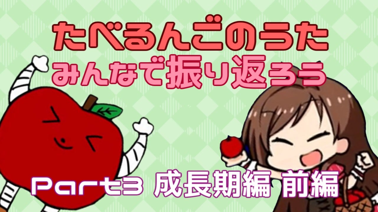 <span style="color: #00ff00; font-size: 18px;">#ユニ募のボイス付き会話楽しみ</span><br><br>6.0回目の初投稿です.<br><br>Part3前編は第二次ブームの成長期の動画紹介がメインです.<br>後編では,分析と考察をします.<br><br>【第2次ブーム成長期 殿堂入りんご】※作品が多いので,半分は後編に記載.<br>ノムリッシュたべるんごのうた <a href="https://www.nicovideo.jp/watch/sm36446963" class="watch">sm36446963</a><br>ようこそたべるんごパークへ <a href="https://www.nicovideo.jp/watch/sm36447657" class="watch">sm36447657</a><br>愛のたべるんごのうた <a href="https://www.nicovideo.jp/watch/sm36447342" class="watch">sm36447342</a><br>たべるんギョのうた <a href="https://www.nicovideo.jp/watch/sm36449068" class="watch">sm36449068</a><br>もうたBEられない <a href="https://www.nicovideo.jp/watch/sm36450472" class="watch">sm36450472</a><br><br>READY STEADY たべるんGO <a href="https://www.nicovideo.jp/watch/sm36451768" class="watch">sm36451768</a><br>SSSS.たべるんごマン <a href="https://www.nicovideo.jp/watch/sm36455593" class="watch">sm36455593</a><br>ルパンごのうた <a href="https://www.nicovideo.jp/watch/sm36460224" class="watch">sm36460224</a><br>ドカベンごのうた <a href="https://www.nicovideo.jp/watch/sm36461632" class="watch">sm36461632</a><br>おりんごてんごく <a href="https://www.nicovideo.jp/watch/sm36462261" class="watch">sm36462261</a><br><br>おわりんごのうた <a href="https://www.nicovideo.jp/watch/sm36465161" class="watch">sm36465161</a><br>たべるん経 <a href="https://www.nicovideo.jp/watch/sm36469612" class="watch">sm36469612</a><br>さくらんごのうた <a href="https://www.nicovideo.jp/watch/sm36470671" class="watch">sm36470671</a><br>キン肉マンごのうた <a href="https://www.nicovideo.jp/watch/sm36471793" class="watch">sm36471793</a><br><br><span style="color: #ff9900; font-size: 18px;">※注意点※<br>定量的な評価を心がけますが,時には独自の解釈を述べることがあります.<br>あくまで,考え方の一つとして捉えるようにお願い致します.<br><br>コメントやTwitterを通じて,みんなで考察を深めていきたいので,<br>批判や賛成,補足コメントを積極的に発信してくださると幸いです.<br>※※※※※</span><br><br>更新された大百科にて,本動画が紹介されていました.ありがたや…<br>Part1を投稿した頃よりグレードアップしており,勉強させてもらってます!<br><a href="https://dic.nicovideo.jp/v/sm36210300" target="_blank" rel="noopener nofollow">https://dic.nicovideo.jp/v/sm36210300</a><br><br>youtube版>> <a href="https://youtu.be/ejAx4Y6Mql0" target="_blank" rel="noopener nofollow">https://youtu.be/ejAx4Y6Mql0</a><br>作者Twitter>> <a href="http://www.twitter.com/OPERATE_YAHAGI" target="_blank" rel="noopener nofollow">http://www.twitter.com/OPERATE_YAHAGI</a><br><br>Part1>> <a href="https://www.nicovideo.jp/watch/sm36887339" class="watch">sm36887339</a><br>Part2>> <a href="https://www.nicovideo.jp/watch/sm36917046" class="watch">sm36917046</a><br><br><strong>Part3後編>> <a href="https://www.nicovideo.jp/watch/sm37085908" class="watch">sm37085908</a> お待たせ!</strong><br><br>※本Part投稿にあたり,添削に参加していただいた皆様に御礼を申し上げます.