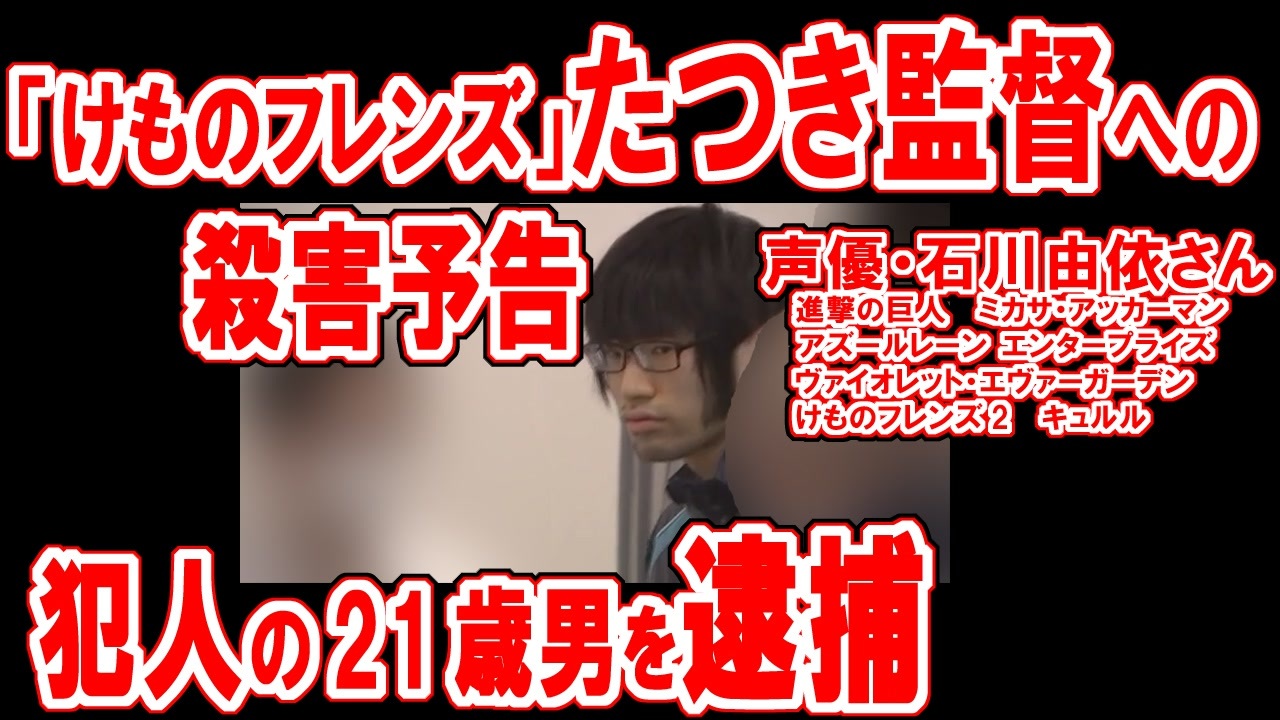 <br><span style="color: #ff0000; font-size: 24px;"><strong><u>2020年6月6日、5ちゃんねるにて再度<br>たつき監督への◯害予告発生しました<br>岸本容疑者とは別件です。詳細は→ <a href="https://www.nicovideo.jp/watch/sm36985660" class="watch">sm36985660</a></u></strong></span><br><br><br><span style="font-size: 14px;">いつもコメントやマイリス登録、そして広告をつけてくださってありがとうございます。</span><br><br>犯人が逮捕され、たつき監督も声優さんも無事でよかった。<br>脅迫事件の犯人逮捕のニュースおよび、<br>たつき監督と関係者が巻き込まれていたトラブル、<br>悪質まとめブログ・やらおんについて軽く解説を少し加えた動画となります。<br><br><a href="https://www.nicovideo.jp/watch/sm36814731" class="watch">sm36814731</a> の被害届提出の動画は肉声で<br>聞き取りづらいとの指摘がありましたので、今回はゆっくり音声にしました。<br><br>