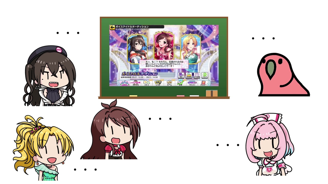 前回投稿のParty Unit(<a href="https://www.nicovideo.jp/watch/sm36953900" class="watch">sm36953900</a>)で桐生つかさ氏の要望があったので作成。<br>デフォルメが見当たらなかったから、あかりんごをベースに描いたんご。<br><br><span style="color: #000000; font-size: 14px;">桐生つかさ氏の</span>BBを使用するときはクロマキーの色相・彩度の範囲を0にしないと、青色の髪色が透けるんご。