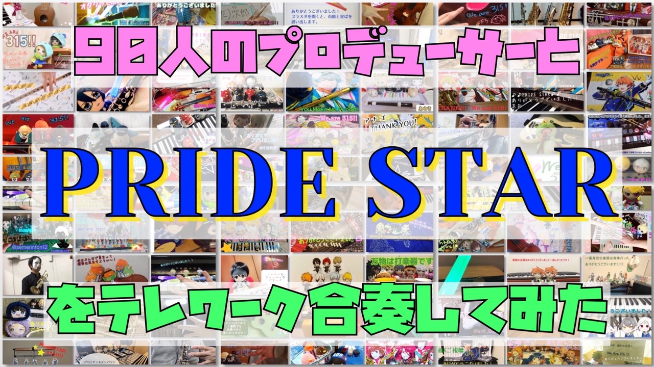 <span style="color: #454545; font-size: 17px;">総勢90人のプロデューサーさんとテレワーク合奏しました!</span><br><br>テレワーク企画の第2弾です。<br>第1弾⇨ <span style="color: #000000; font-size: 14px;"><a href="https://www.nicovideo.jp/watch/sm36821659" class="watch">sm36821659</a></span><br>第3弾⇒ <a href="https://www.nicovideo.jp/watch/sm37437777" class="watch">sm37437777</a><br><br>副旋律やハモリのパート、打楽器が増え前回よりも賑やかな動画になりました。<br>動画の編集をしながら、隣の人と音程を合わせたり、メロディーを引き立てられるようにハモリを演奏したりすることは、同じ空気を共有していたからこそできたことだったのだと感じました。<br><br>演奏オフ会の性質上、三密を避けることはできません。<br>プロデューサーさんたちと同じ場所に集まって演奏できる日が、なるべく早く来ることを祈っています。<br><br>この企画の進行中に5thライブの中止も発表されました。<br>担当アイドルがこの曲を歌っているところを見られていないプロデューサーさんもいらっしゃると思います。<br>苦しい期間が続きますが、見てくださった方たちの心が少しでも楽しくなりますように。<br><br><br>「PRIDE STAR」<br>THE IDOLM@STER SideM 5th ANNIVERSARY DISC 01 PRIDE STAR<br>に収録された楽曲。<br>作詞:BNSI(柿埜嘉奈子)<br>作曲:本多友紀(Arte Refact)<br><br>315プロ演奏企画マイリスト <a href="https://www.nicovideo.jp/mylist/63790629" target="_blank" rel="noopener">mylist/63790629</a><br>315プロ演奏企画Twitter 【 <a href="https://mobile.twitter.com/music315p" target="_blank" rel="noopener nofollow">https://mobile.twitter.com/music315p</a> 】