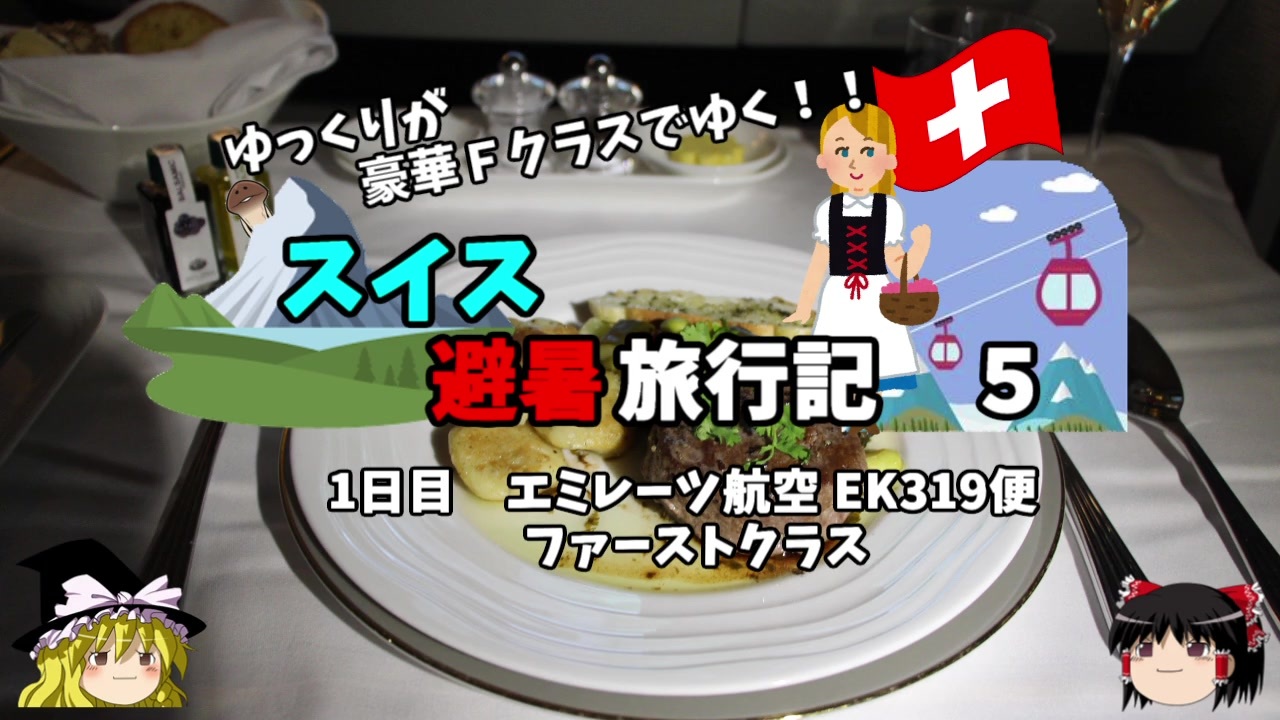 <span style="color: #ff0000; font-size: medium;"><u>※Youtubeで1話分、先行配信中 </u></span><br><span style="color: #0000ff; font-size: medium;"> <a href="http://www.youtube.com/c/なめこのぼっち旅" target="_blank" rel="noopener nofollow">http://www.youtube.com/c/なめこのぼっち旅</a></span><br><br><br>いよいよこの旅行記のメイン、<br>エミレーツ航空のファーストクラスを紹介します!<br><br><span style="color: #ff0000;">コミュニティー→co2910020</span><br><br>twitter→<a href="https://twitter.com/ryontan" target="_blank" rel="noopener nofollow">https://twitter.com/ryontan</a><br><br><a href="https://www.nicovideo.jp/watch/sm36953777" class="watch">sm36953777</a>← 前回 <span style="color: #ff0000;">次回 6話 →</span><a href="https://www.nicovideo.jp/watch/sm37029747" class="watch">sm37029747</a><br><br>解説・雑談系→<a href="https://www.nicovideo.jp/mylist/63171869" target="_blank" rel="noopener">mylist/63171869</a><br>今作 スイス旅行記<span style="color: #000000; font-size: 14px;">→mylist/</span>68347869<br><span style="color: #000000; font-size: 14px;">前作 </span>スペイン周遊記→<a href="https://www.nicovideo.jp/mylist/64537827" target="_blank" rel="noopener">mylist/64537827</a><br>韓国トルコ旅行記→<a href="https://www.nicovideo.jp/mylist/63654428" target="_blank" rel="noopener">mylist/63654428</a><br>車中泊旅行記→<a href="https://www.nicovideo.jp/mylist/54706524" target="_blank" rel="noopener">mylist/54706524</a><br>久米島(沖縄)旅行記→<a href="https://www.nicovideo.jp/mylist/63059251" target="_blank" rel="noopener">mylist/63059251</a><br>イギリスタイ旅行記→<a href="https://www.nicovideo.jp/mylist/60044833" target="_blank" rel="noopener">mylist/60044833</a><br>クルーズ旅行記→<a href="https://www.nicovideo.jp/mylist/57397685" target="_blank" rel="noopener">mylist/57397685</a><br>ドイツ周遊記→<a href="https://www.nicovideo.jp/mylist/54938346" target="_blank" rel="noopener">mylist/54938346</a><br>北海道旅行記→<a href="https://www.nicovideo.jp/mylist/52618057" target="_blank" rel="noopener">mylist/52618057</a><br>アメリカ横断記→<a href="https://www.nicovideo.jp/mylist/48621785" target="_blank" rel="noopener">mylist/48621785</a><br>イタリア周遊記→<a href="https://www.nicovideo.jp/mylist/45763559" target="_blank" rel="noopener">mylist/45763559</a><br>NY旅行記→<a href="https://www.nicovideo.jp/mylist/44343854" target="_blank" rel="noopener">mylist/44343854</a>