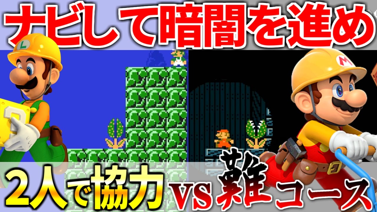 【マリオメーカー2】2P協力で激ムズコースを突破せよ #9 「暗闇をナビ」 14:13