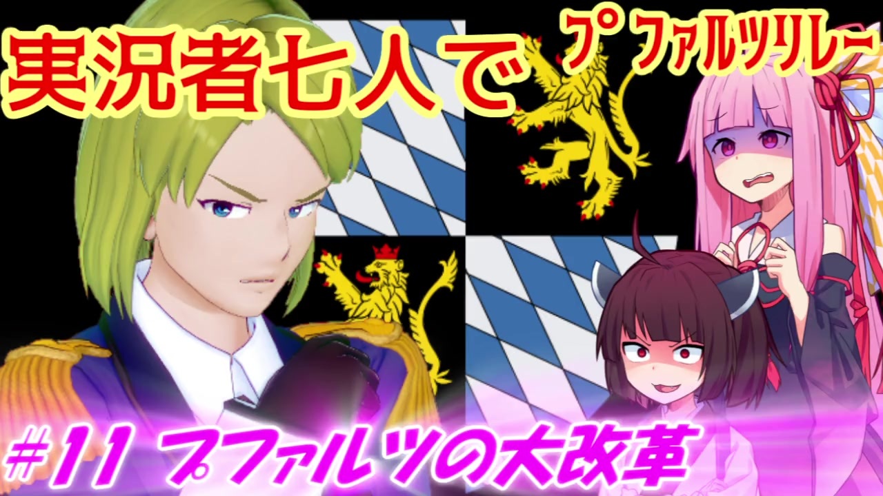 これはプファルツ公国を、実況者7人が1世代ずつ担当してリレーをしていく企画動画です。<br><br>前の動画:<a href="https://www.nicovideo.jp/watch/sm36965610" class="watch">sm36965610</a><br>次の動画:<a href="https://www.nicovideo.jp/watch/sm37037613" class="watch">sm37037613</a><br>マイリスト:<a href="https://www.nicovideo.jp/mylist/68365197" target="_blank" rel="noopener">mylist/68365197</a><br><br>【基本プレイ内容】<br>・1444年プファルツ開始、1821年終了<br>君主の代替わりで次の人に交代<br>早死した場合も同様にバトンタッチ<br>摂政期間は前担当が摂政期間を行い、後継者が即位したら次の人にバトンタッチ<br><br>【禁止事項】<br>・アイディアの削除<br>・後継者の廃嫡<br><br>【参加メンバー】<br>1番手:鏡秋雪 <a href="https://www.nicovideo.jp/user/28271" target="_blank" rel="noopener">user/28271</a><br>2番手:タツクマさん <a href="https://www.nicovideo.jp/user/92265049" target="_blank" rel="noopener">user/92265049</a><br>3番手:BOOSTさん <a href="https://www.nicovideo.jp/user/35343436" target="_blank" rel="noopener">user/35343436</a><br>4番手:ガラナさん <a href="https://www.nicovideo.jp/user/10735" target="_blank" rel="noopener">user/10735</a><br>5番手:シーラさん <a href="https://www.nicovideo.jp/user/96043886" target="_blank" rel="noopener">user/96043886</a><br>6番手:さくようさん <a href="https://www.nicovideo.jp/user/7572677" target="_blank" rel="noopener">user/7572677</a><br>7番手:srymさん <a href="https://www.nicovideo.jp/user/89094950" target="_blank" rel="noopener">user/89094950</a><br><br>導入DLC<br>主要DLCすべて<br><br>導入MOD<br>JPMOD Main 1:Fonts and UI<br>JPMOD Main 2:Text<br>+JPMOD Font Gothic<br>Bullets Peace Terms JP<br>Graphical Map Improvents<br>The Great Exhibition<br><br>日本語MODは <a href="https://paradoxian-japan-mod.com/" target="_blank" rel="noopener nofollow">https://paradoxian-japan-mod.com/</a><br>のものを使わせていただいております。<br><br>進捗はバカッターにてお知らせしています:<a href="https://twitter.com/Kagami_Shusetsu" target="_blank" rel="noopener nofollow">https://twitter.com/Kagami_Shusetsu</a><br><br>他の実況者様に迷惑をかけないために、全力でこの企画を優先して作業しています。<br>ヘルレ公国興亡記の続きはもうしばらくお待ちください…(焼き土下座