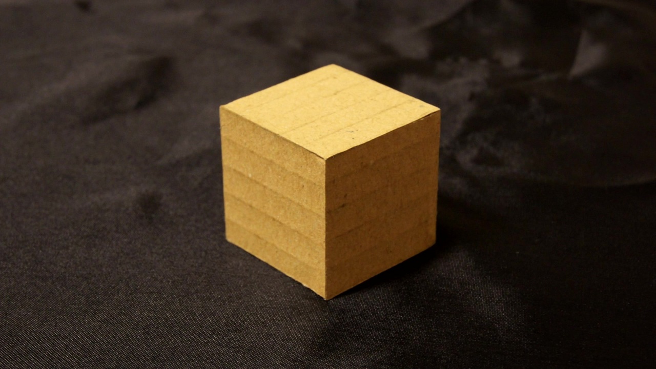 習作です。<br>仕上がりを綺麗に加工するための訓練として、30mm×30mm×30mmの立方体を作りました。ダンボールの厚み分を切り取り、のりしろを作って角を貼り合わせています。<br><br>皆さんもぜひぜひやってみてくださいね。<br><br><span style="font-size: 14px;">出版中!「7日間でできる世界一美しいダンボールクラフト」</span><br><a href="https://www.amazon.co.jp/dp/4046048352/" target="_blank" rel="noopener nofollow">https://www.amazon.co.jp/dp/4046048352/</a><br><br>ダンボール作品マイリスト→ <a href="https://www.nicovideo.jp/mylist/31992901" target="_blank" rel="noopener">mylist/31992901</a><br>演奏系マイリスト→ <a href="https://www.nicovideo.jp/mylist/49651881" target="_blank" rel="noopener">mylist/49651881</a><br>Twitter→ @upaza_toryo<br>HP→ <a href="https://www.upaza-toryo.okinawa" target="_blank" rel="noopener nofollow">https://www.upaza-toryo.okinawa</a><br>