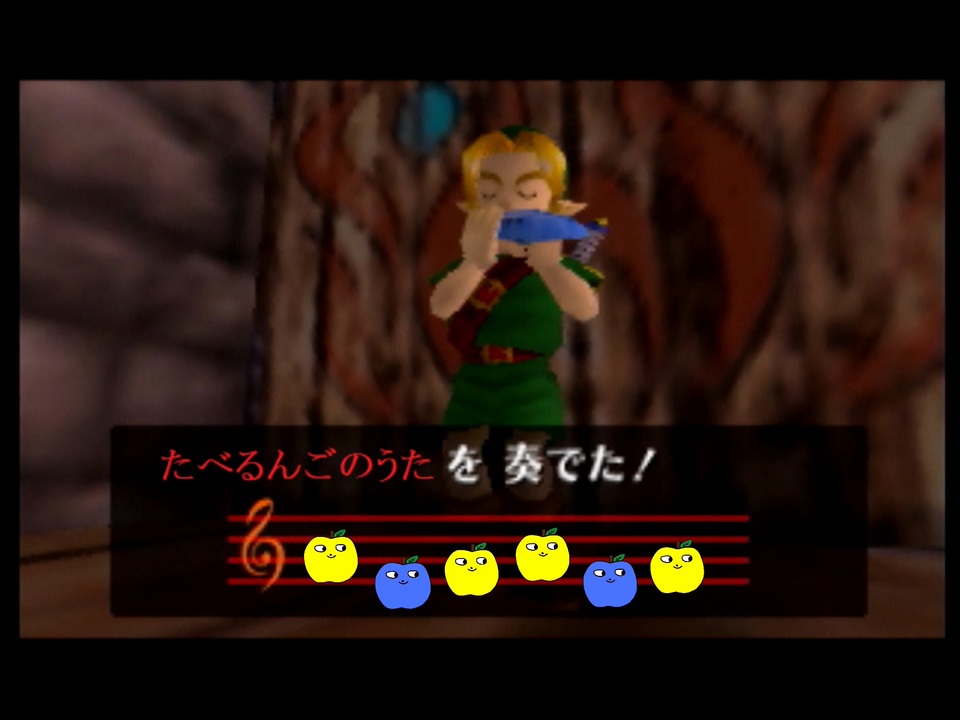 こいつはリンクごろう<br><br><br>思いつきでやってみました。思いつくのが2ヶ月くらい遅かったような気がしないでもない。<br>原曲のテンポで入力するのは無理だったのでゆっくり弾いたものを編集でテンポ上げたり部分的に継ぎ接ぎしたりしてます。多少ミスってたりリズムずれてたりするのは許してね。<br><br><br>以下、入力コマンド(矢印はスティックの方向)<br>↑C下,C下,↑A, A ↑A,C下,↑A, A <span style="color: #666666;">(たーべるんごー たべるんごー)</span><br>↑A,C下,C下,C下,↑A,C下,↑A, A ↑A,C下,↑A,C下,↑C下 <span style="color: #666666;">(やまがたりんごを たべるんごー)</span><br>↑C下,C下,↑A, A ↑A,C下,↑A, A <span style="color: #666666;">(おいしいりんごを たべるんごー)</span><br>↑A,C下 ↑A,C下,↑A,A,↓A ↓A,↑C下 <span style="color: #666666;">(いっぱい たべるんごー ンゴー)</span><br>↑C下,C下,↑A, A ↑A,C下,↑A, A <span style="color: #666666; font-size: 14px;">(たーべるんごー たべるんごー)</span><br>↑A,C下,C下,C下,↑A,C下,↑A, A ↑A,C下,↑A,C下,↑C下 <span style="color: #666666; font-size: 14px;">(やまがたりんごを たべるんごー)</span><br>↑C下,C下,↑A, A ↑A,C下,↑A, A <span style="color: #666666;">(あーまいりんごを たべるんごー)</span><br>↑A,C下,C下,↑A, A,↑A,↑A, A,↓A, ↑C下,↓A <span style="color: #666666;">(もりもりたべるんごー ンゴー)</span><br>A,↑A,↑A,C下,↑A, A,↑A,↓A ↑C下,↓A <span style="color: #666666;">(こいつはりんごろう ンゴー)</span><br><br>ボタン2つとスティックだけで弾けます<br><br><br>たべるんごのうた:<a href="https://www.nicovideo.jp/watch/sm36210300" class="watch">sm36210300</a><br>おわりんごのうた:<a href="https://www.nicovideo.jp/watch/sm36465161" class="watch">sm36465161</a>
