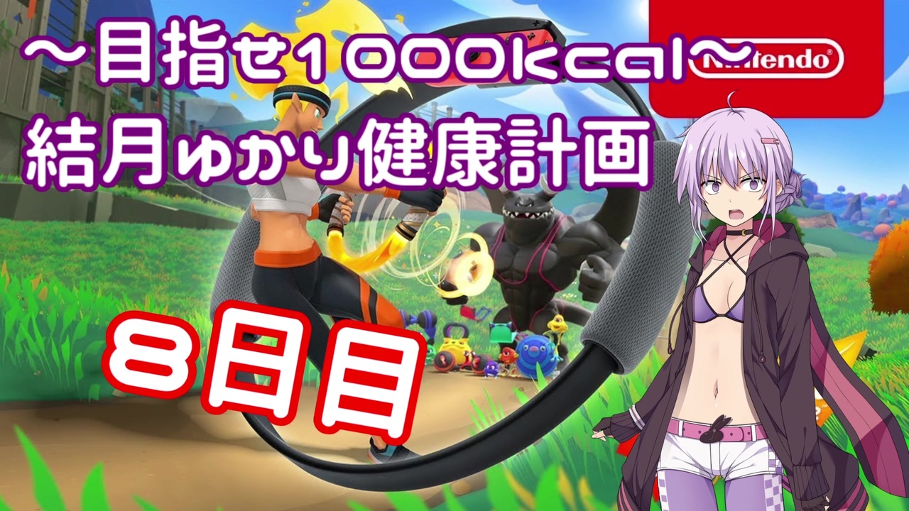 ようやくYMMからAviutlに編集乗り換えて<span style="color: #000000; font-size: 14px;">目パチ口パクを会得したの</span>で初投稿です。<br><br>筋トレ素人なので補足説明兄貴ありがたいです、ありがとうございます。<br><br>リングフィットアドベンチャー公式サイト(エクササイズ一覧) ➡ <a href="https://www.nintendo.co.jp/ring/list/index.html" target="_blank" rel="noopener nofollow">https://www.nintendo.co.jp/ring/list/index.html</a><br><br><span style="font-size: 16px;"><strong>※中の人は格闘技経験者なので調子乗って過負荷設定にしてますが、皆さんは絶対に通常通りの負荷でトレーニングを行ってください、マキちゃんとの約束だぞ!</strong></span><br><br><span style="color: #ff0000; font-size: 18px;">オーバーワークには絶対に注意しましょう<br>怪我をしないように休憩、水分補給を適時行う等、安全確保は最大限に<br>楽しく安全にエクササイズをしましょう</span><br><br><u>前→ <a href="https://www.nicovideo.jp/watch/sm36891610" class="watch">sm36891610</a><br>次→ <a href="https://www.nicovideo.jp/watch/sm37130164" class="watch">sm37130164</a></u><br><span style="color: #000000; font-size: 13px;"><u>1日目→ <a href="https://www.nicovideo.jp/watch/sm35868738" class="watch">sm35868738</a></u></span><br>結月ゆかり健康計画シリーズ <a href="https://www.nicovideo.jp/series/68770" target="_blank" rel="noopener">series/68770</a>