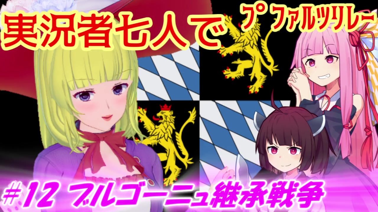 これはプファルツ公国を、実況者7人が1世代ずつ担当してリレーをしていく企画動画です。<br><br>前の動画:<a href="https://www.nicovideo.jp/watch/sm36999295" class="watch">sm36999295</a><br>次の動画:<a href="https://www.nicovideo.jp/watch/sm37068367" class="watch">sm37068367</a><br>マイリスト:<a href="https://www.nicovideo.jp/mylist/68365197" target="_blank" rel="noopener">mylist/68365197</a><br><br>【基本プレイ内容】<br>・1444年プファルツ開始、1821年終了<br>君主の代替わりで次の人に交代<br>早死した場合も同様にバトンタッチ<br>摂政期間は前担当が摂政期間を行い、後継者が即位したら次の人にバトンタッチ<br><br>【禁止事項】<br>・アイディアの削除<br>・後継者の廃嫡<br><br>【参加メンバー】<br>1番手:鏡秋雪 <a href="https://www.nicovideo.jp/user/28271" target="_blank" rel="noopener">user/28271</a><br>2番手:タツクマさん <a href="https://www.nicovideo.jp/user/92265049" target="_blank" rel="noopener">user/92265049</a><br>3番手:BOOSTさん <a href="https://www.nicovideo.jp/user/35343436" target="_blank" rel="noopener">user/35343436</a><br>4番手:ガラナさん <a href="https://www.nicovideo.jp/user/10735" target="_blank" rel="noopener">user/10735</a><br>5番手:シーラさん <a href="https://www.nicovideo.jp/user/96043886" target="_blank" rel="noopener">user/96043886</a><br>6番手:さくようさん <a href="https://www.nicovideo.jp/user/7572677" target="_blank" rel="noopener">user/7572677</a><br>7番手:srymさん <a href="https://www.nicovideo.jp/user/89094950" target="_blank" rel="noopener">user/89094950</a><br><br>導入DLC<br>主要DLCすべて<br><br>導入MOD<br>JPMOD Main 1:Fonts and UI<br>JPMOD Main 2:Text<br>+JPMOD Font Gothic<br>Bullets Peace Terms JP<br>Graphical Map Improvents<br>The Great Exhibition<br><br>日本語MODは <a href="https://paradoxian-japan-mod.com/" target="_blank" rel="noopener nofollow">https://paradoxian-japan-mod.com/</a><br>のものを使わせていただいております。<br><br>進捗はバカッターにてお知らせしています:<a href="https://twitter.com/Kagami_Shusetsu" target="_blank" rel="noopener nofollow">https://twitter.com/Kagami_Shusetsu</a><br><br>他の実況者様に迷惑をかけないために、全力でこの企画を優先して作業しています。<br>ヘルレ公国興亡記の続きはもうしばらくお待ちください…(焼き土下座
