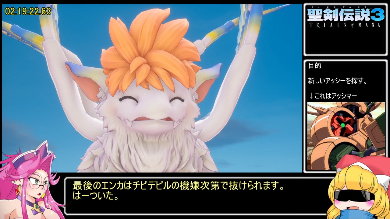 サムネが2択で悩んだので初投稿です<br><br>Steam版でプレイ<br>マナの聖域 ~ 2体目の神獣撃破まで<br><br>無編集版:<a href="https://www.youtube.com/watch?v=MQ0akvsfKsg&t=11809s" target="_blank" rel="noopener nofollow">https://www.youtube.com/watch?v=MQ0akvsfKsg&t=11809s</a><br><br>動画内の説明であったキルスティンガーバグ動画:<a href="https://clips.twitch.tv/InquisitiveSavoryClipsmomTheRinger" target="_blank" rel="noopener nofollow">https://clips.twitch.tv/InquisitiveSavoryClipsmomTheRinger</a><br><br>パート1【<a href="https://www.nicovideo.jp/watch/sm36984060" class="watch">sm36984060</a>】<br>このシリーズ【<a href="https://www.nicovideo.jp/series/133148" target="_blank" rel="noopener">series/133148</a>】<br>前走<span style="color: #000000; font-size: 14px;">【<a href="https://www.nicovideo.jp/series/125979" target="_blank" rel="noopener">series/125979</a>】</span><br>前々走【<a href="https://www.nicovideo.jp/series/121903" target="_blank" rel="noopener">series/121903</a>】<br><br>※この動画にはガバ操作、何か変な音声、倍速動作などが含まれます。<br> その点を承知した上で視聴ください。<br> うp主はガチ勢ではありません、それだけは真実を伝えたかった。<br><br><span style="color: #000000; font-size: 14px;"><strong>前パート宣伝者様,宣伝ありがとうございます</strong></span><br><strong>ゲシュラー様,sa様,万寿様,なかにち様,トーキ様,トッキッキー様,J.B様,島田カンベエ様,Noron様,柴犬もふりたい様,Altschwarz様,;(∩´ω`∩);:様,momae様,紫楼様,ななし様,奴隷獣タカ様,Lui様,yamasetti様,ライゼン様,きしめん様,けやむぱ様,KAZUKiX様,midorenger様,maro様,HMD様,TOMO様,産地直送おこめ券様,ルサフサネ様,ゆう様,DF様,★しこくぜい★様,鏡の破片様,rpger様,tukinon2様,理の女王様,イキスギたムーニーマンのウィヒ様,kuu様,SNTK様</strong><br><br><span style="color: #000000; font-size: 16px;"><strong>このコンテンツは株式会社スクウェア・エニックスが権利を有する著作物を利用しています。 <br>当該コンテンツの転載・配布は禁止いたします。 <br>© 1995, 2020 SQUARE ENIX CO., LTD. All Rights Reserved. </strong></span>