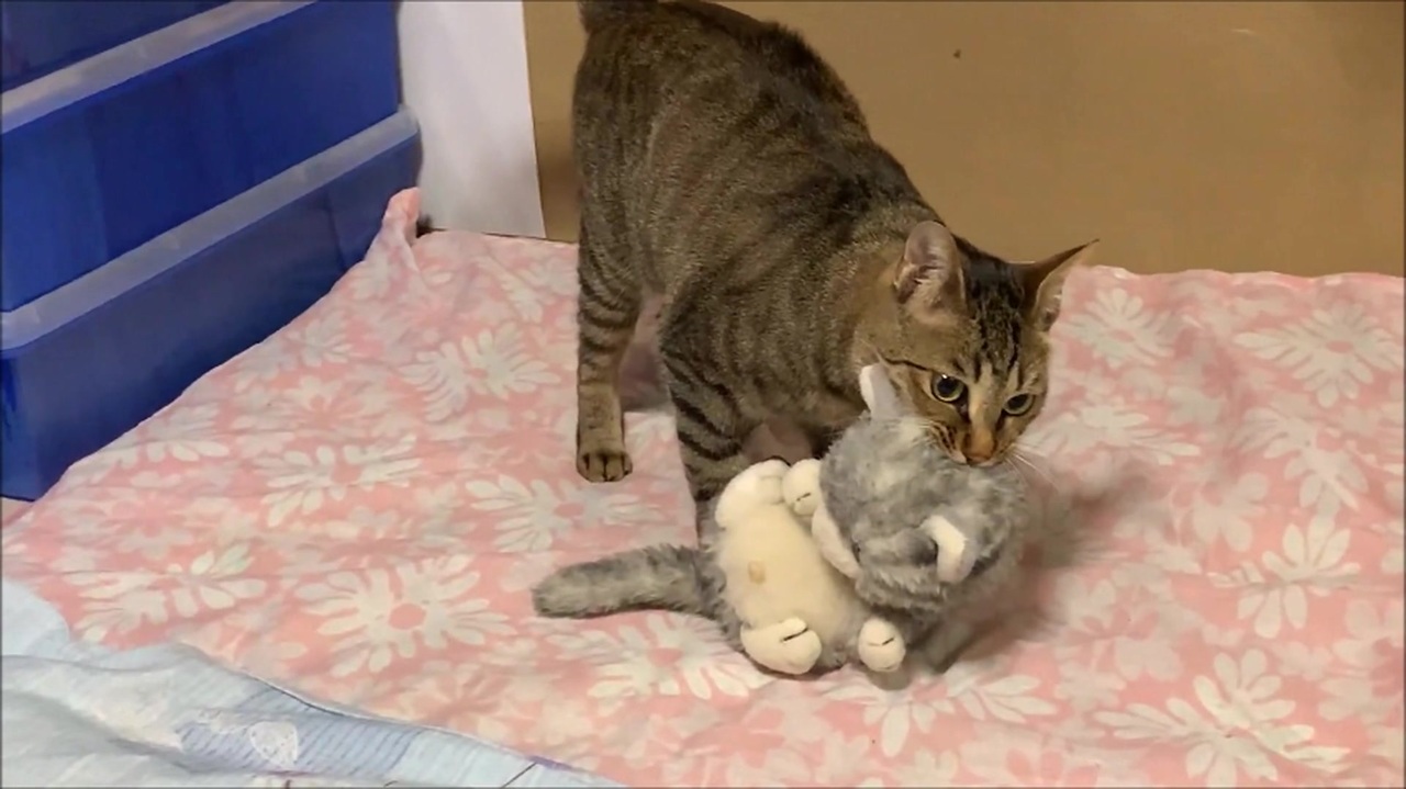 きなこの一人遊び。<br>10分ぐらいこんな事を続けてました。<br>朝起きた時とか出かけて帰ってくると大体ぬいぐるみが床に散らばってます。<br>好みもあるようで大体同じぬぐるみをいたぶってるようです。<br><br><br>前→<a href="https://www.nicovideo.jp/watch/sm36917586" class="watch">sm36917586</a> 次→<a href="https://www.nicovideo.jp/watch/sm38037691" class="watch">sm38037691</a><br><br><br>うちのネコさん1→<a href="https://www.nicovideo.jp/mylist/25004376" target="_blank" rel="noopener">mylist/25004376</a> *うちのネコさん2→<a href="https://www.nicovideo.jp/mylist/64196390" target="_blank" rel="noopener">mylist/64196390</a> * 野良ネコさん→<a href="https://www.nicovideo.jp/mylist/28748823" target="_blank" rel="noopener">mylist/28748823</a> * ワンコ→<a href="https://www.nicovideo.jp/mylist/31815319" target="_blank" rel="noopener">mylist/31815319</a> * 保護ネコ小菊ちゃん→<a href="https://www.nicovideo.jp/mylist/33851030" target="_blank" rel="noopener">mylist/33851030</a><br><br>ネコさんとワンコのブログ→<a href="http://ameblo.jp/v-nekomata-v/" target="_blank" rel="noopener nofollow">http://ameblo.jp/v-nekomata-v/</a>