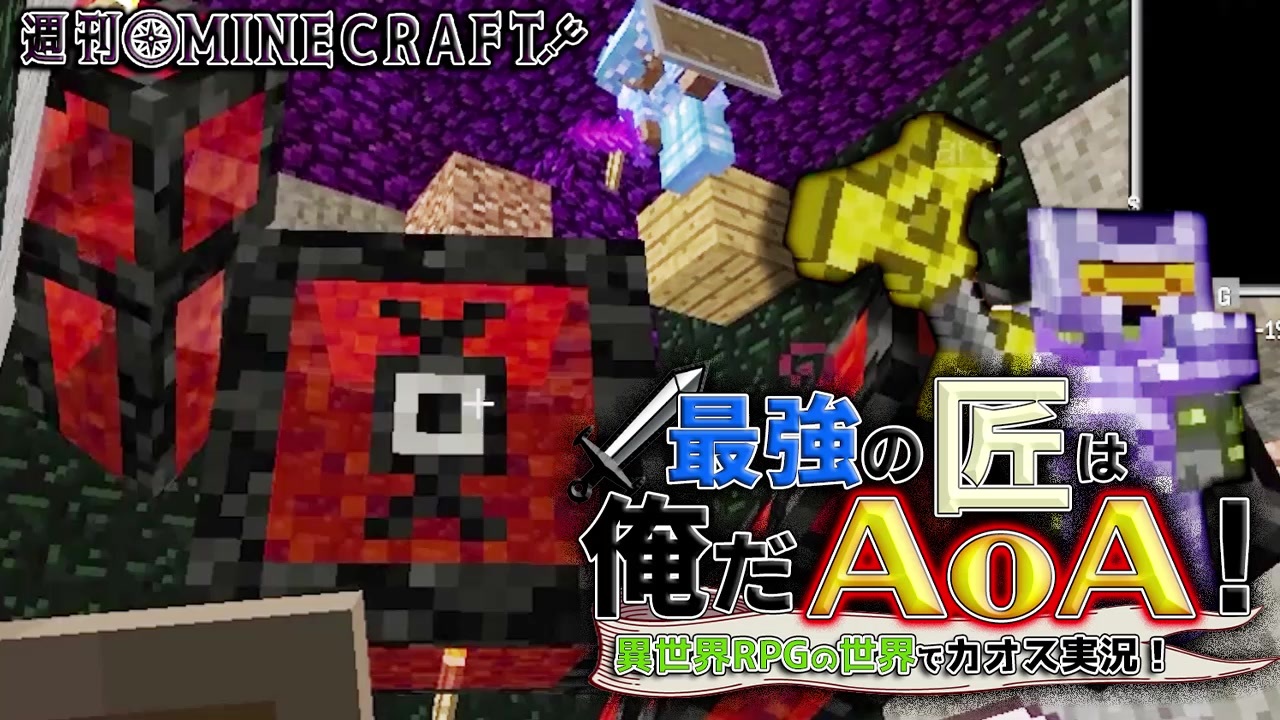 全世界のみんな、最強の匠AoAってか週刊マインクラフト!!<br>順調に新世界を旅する4人であったが、ここにきて難易度急上昇!?<br>MSSPの技術力は右肩下がりの中、どう対抗するかが肝!<br><br>★FB777→黒服。目標は無想転生。<br>★あろま→マスターチーフ。目標は転生眼。<br>★EOHEOH→素スティーブ。目標は画龍点睛。<br>★KIKKUN-MK-Ⅱ→ヨッシー。目標はところてん政策。<br><br>今回の導入MOD<br>AdventofAscension→<a href="https://www.minecraftforum.net/forums/mapping-and-modding-java-edition/minecraft-mods/1286381-aoa-25-new-dimensions-330-mobs-27-bosses-skills" target="_blank" rel="noopener nofollow">https://www.minecraftforum.net/forums/mapping-and-modding-java-edition/minecraft-mods/1286381-aoa-25-new-dimensions-330-mobs-27-bosses-skills</a><br>Just Enough Items<br>Xaeros_Minimap<br>ToroHealth Damage Indicators MOD<br>Inventory Tweaks<br><br>高画質はこちら→<a href="https://youtu.be/OZXkwuT61NE" target="_blank" rel="noopener nofollow">https://youtu.be/OZXkwuT61NE</a><br><br>前回→<a href="https://www.nicovideo.jp/watch/sm37034817" class="watch">sm37034817</a> 次回→<a href="https://www.nicovideo.jp/watch/sm37109051" class="watch">sm37109051</a><br>マイクラマイリス→<a href="https://www.nicovideo.jp/mylist/34003718" target="_blank" rel="noopener">mylist/34003718</a><br>