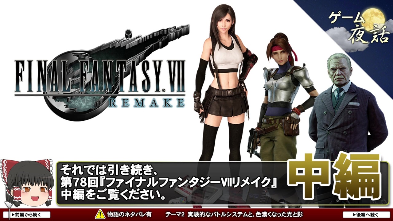 過去動画を宣伝して下さった皆さん、ありがとうございましたm(__)m<br>毎回ひとつのゲームを取り上げ、3つのテーマから解説&考察します。<br>【前編】は毎月1日・15日更新、【後編】は制作状況に応じて更新致します。<br><br>■前編:<a href="https://www.nicovideo.jp/watch/sm37044590" class="watch">sm37044590</a><br>■後編:<a href="https://www.nicovideo.jp/watch/sm37094704" class="watch">sm37094704</a><br><br>■youtubeはこちら <a href="https://youtu.be/rJJ1uBKfz00" target="_blank" rel="noopener nofollow">https://youtu.be/rJJ1uBKfz00</a><br>■告知用のツイッター <a href="https://twitter.com/gameyawa" target="_blank" rel="noopener nofollow">https://twitter.com/gameyawa</a><br><br><span style="color: #000000; font-size: 13px;">■第77回「俺の屍を越えてゆけ」</span><a href="https://www.nicovideo.jp/watch/sm36968737" class="watch">sm36968737</a><span style="color: #000000; font-size: 13px;">(前編)</span><a href="https://www.nicovideo.jp/watch/sm36844292" class="watch">sm36844292</a><span style="color: #000000; font-size: 13px;">(後編) </span><br>■第79回「真・女神転生Ⅱ」前編:<a href="https://www.nicovideo.jp/watch/sm37127429" class="watch">sm37127429</a> 中編:<a href="https://www.nicovideo.jp/watch/sm37173593" class="watch">sm37173593</a> 後編:<a href="https://www.nicovideo.jp/watch/sm37184153" class="watch">sm37184153</a><br><br>■ゲーム夜話マイリスト <a href="https://www.nicovideo.jp/mylist/56973971" target="_blank" rel="noopener">mylist/56973971</a><br><span style="color: #000000; font-size: 13px;">■ゲーム夜話特別編マイリスト <a href="https://www.nicovideo.jp/mylist/65104419" target="_blank" rel="noopener">mylist/65104419</a></span>