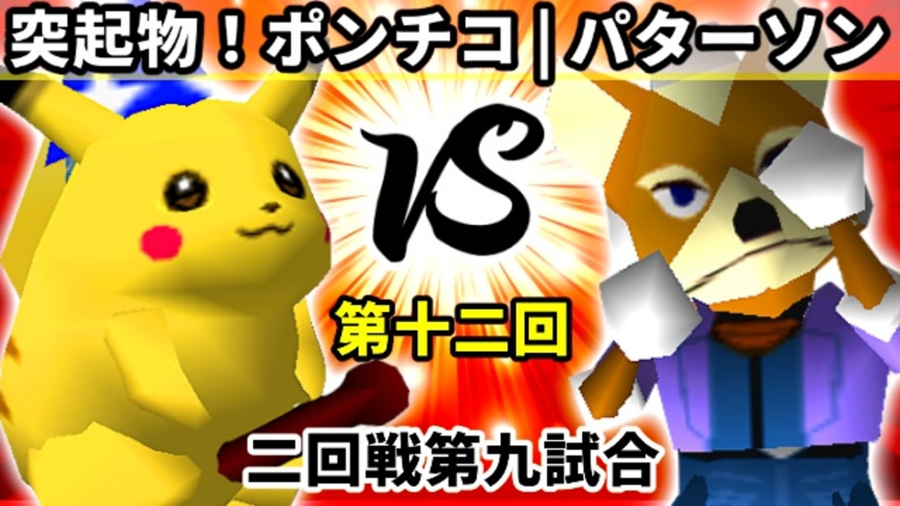 <span style="color: rgba(0, 0, 0, 0.87); font-size: 15px;">また悲しみを背負ってしまうことになるのか・・・?<br>※どちらが勝つかアンケ結果(Twitter調べ) <br>突起物!ポンチコ(PI) 68% VS 悲しみのパターソン(FO) 32%</span><br><br><span style="color: #0000ff; font-size: 13px;">※スマブラCPUトナメ実況wiki→</span> <a href="https://wiki3.jp/64cpu_P" target="_blank" rel="noopener nofollow">https://wiki3.jp/64cpu_P</a><br><br><span style="color: #ff0000; font-size: 24px;"><strong>次→</strong></span>【<a href="https://www.nicovideo.jp/watch/sm37120203" class="watch">sm37120203</a><span style="color: rgba(0, 0, 0, 0.87); font-size: 15px;">】※毎日投稿</span><br><br>前【<a href="https://www.nicovideo.jp/watch/sm37110711" class="watch">sm37110711</a>】 一回戦第一試合<span style="color: rgba(0, 0, 0, 0.87); font-size: 15px;">【</span><a href="https://www.nicovideo.jp/watch/sm36983765" class="watch">sm36983765</a><span style="color: rgba(0, 0, 0, 0.87); font-size: 15px;">】</span><br><span style="color: #ff0000; font-size: 14px;"><strong>【第十二回】64スマブラCPUトナメマイリスト</strong></span><span style="color: #000000; font-size: 14px;">【</span><a href="https://www.nicovideo.jp/mylist/68523077" target="_blank" rel="noopener">mylist/68523077</a><span style="color: #000000; font-size: 14px;">】</span><br>スマブラCPUトナメ実況part1まとめ【<a href="https://www.nicovideo.jp/mylist/60846861" target="_blank" rel="noopener">mylist/60846861</a>】<br>その他シリーズ【<a href="https://www.nicovideo.jp/mylist/12965027" target="_blank" rel="noopener">mylist/12965027</a>】<br><br><span style="color: #00bfff; font-size: 13px;"><strong>Twitter</strong></span>【<a href="https://twitter.com/niconicopppppp" target="_blank" rel="noopener nofollow">https://twitter.com/niconicopppppp</a> 】<br><span style="color: #ff4500; font-size: 13px;"><strong>チャンネル</strong></span>【<a href="https://ch.nicovideo.jp/p-desu" target="_blank" rel="noopener">ch.nicovideo.jp/p-desu</a>】
