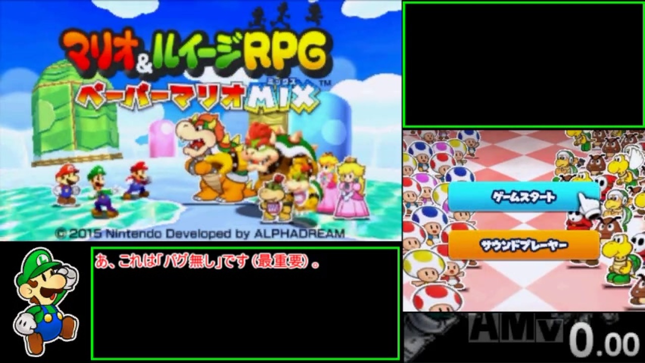 最初~チュートリアル終了まで<br><br>× イージーモード<br>× イベントスキップ<br>× あらゆるバグ技<br>× Amiibo<br>〇 New3DSなら… New3DSならZL、ZRボタンですぐに全快できるのに…<br><br>あらゆるバグ技を解禁した場合→<a href="https://www.nicovideo.jp/watch/sm31489384" class="watch">sm31489384</a><br>次→<a href="https://www.nicovideo.jp/watch/sm37133672" class="watch">sm37133672</a><br><br>マイリスト→<a href="https://www.nicovideo.jp/mylist/68823327" target="_blank" rel="noopener">mylist/68823327</a><br><br><span style="font-size: 10px;">検索用:マリオ&ルイージRPG </span>