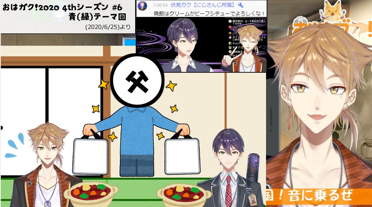 (チャンネル登録お願いします!)<br>・伏見ガク <a href="https://www.youtube.com/channel/UCXU7YYxy_iQd3ulXyO-zC2w?sub_confirmation=1" target="_blank" rel="noopener nofollow">https://www.youtube.com/channel/UCXU7YYxy_iQd3ulXyO-zC2w?sub_confirmation=1</a><br>・剣持刀也 <a href="https://www.youtube.com/channel/UCv1fFr156jc65EMiLbaLImw?sub_confirmation=1" target="_blank" rel="noopener nofollow">https://www.youtube.com/channel/UCv1fFr156jc65EMiLbaLImw?sub_confirmation=1</a><br><br>▼元動画<br>【にじさんじ】おはガク!2020 4thシーズン #6 青(緑)テーマ回(2020/06/25)<br><a href="https://www.youtube.com/watch?v=e9aM7cMgLZA" target="_blank" rel="noopener nofollow">https://www.youtube.com/watch?v=e9aM7cMgLZA</a><br>▼該当箇所(12:22~)<br><a href="https://www.youtube.com/watch?v=e9aM7cMgLZA&feature=youtu.be&t=742" target="_blank" rel="noopener nofollow">https://www.youtube.com/watch?v=e9aM7cMgLZA&feature=youtu.be&t=742</a><br><br>▼当日の咎人コラボ<br>復活の咎人コラボ(2020/6/22)<br><a href="https://www.youtube.com/watch?v=MyRCzQTPqQg" target="_blank" rel="noopener nofollow">https://www.youtube.com/watch?v=MyRCzQTPqQg</a><br>咎人最強の男を決める配信(2020/6/22)<br><a href="https://www.youtube.com/watch?v=tkXC4VExF8g" target="_blank" rel="noopener nofollow">https://www.youtube.com/watch?v=tkXC4VExF8g</a><br><br>▼ニセおはガク配信<br>【罰ゲーム企画】おはガク的な配信をしなくてはならない男【ピースなど無い】(2020/6/21)<br><a href="https://www.youtube.com/watch?v=kOIi43bN14E" target="_blank" rel="noopener nofollow">https://www.youtube.com/watch?v=kOIi43bN14E</a><br>▼メンヘラのゲーム配信<br>【これがほんとの】メンヘラに監禁される剣持刀也【ステイホーム】(2020/6/18)<br><a href="https://www.youtube.com/watch?v=VJTRi1qn5ps" target="_blank" rel="noopener nofollow">https://www.youtube.com/watch?v=VJTRi1qn5ps</a>