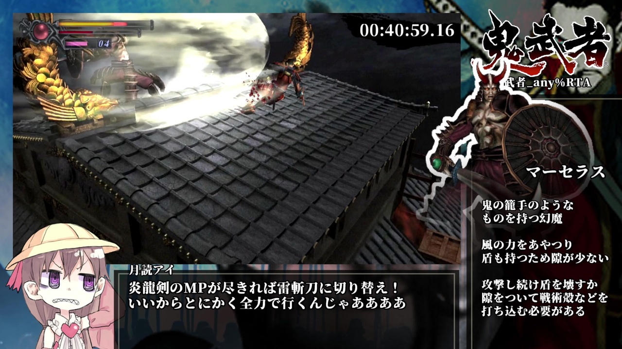 <span style="color: #ff0000; font-size: 24px;"><strong>稲葉ガバ城</strong></span><br><span style="color: #ff0000;"><strong>上から下までしゃぶりつくしたので初投稿です。</strong></span><br><br>次回作(鬼武者2)のRTAはこちら:<a href="https://www.nicovideo.jp/watch/sm45257617" class="watch">sm45257617</a><br><br>【ルール】<br>「はじめから」を選び難易度を選んだ<span style="color: #262626;"><strong>瞬間</strong></span>から<br>ラスボスを撃破した<span style="color: #262626;"><strong>瞬間</strong></span>までを計測します。<br><br>【環境】<br>ぱそこん:NEC 2014年秋モデル Core i7-4710MQ / RAM_8GB / GPU_Intel HD Graphics 4600<br>キャプボ:I-O Data GV-USB3/HD<br>ゲーム機:Nintendo Switch_バッテリー時間古いやつ<br>ゲームソフト:鬼武者リマスター_ソフト版<br>編集ソフト:AviUtl_version1.10<br><br>次Part:<a href="https://www.nicovideo.jp/watch/sm37166775" class="watch">sm37166775</a><br>前Part:<a href="https://www.nicovideo.jp/watch/sm37099868" class="watch">sm37099868</a><br>無編集版:<a href="https://www.nicovideo.jp/watch/sm37081593" class="watch">sm37081593</a><br><br>★biimシステムリスペクトです★<br>★淫夢/クッキー☆要素はないです★<br><br>★お借りした素材★<br>月読アイちゃん先輩立ち絵(ゆぬきうた 様) ☛<a href="https://seiga.nicovideo.jp/seiga/im9925592" target="_blank" rel="noopener">im9925592</a><br /><br>Twitter(旧X)のアカウントあります:<a href="https://x.com/John_may_trix" target="_blank" rel="noopener nofollow">https://x.com/John_may_trix</a><br>これをフォローして生放送や動画投稿、イラストの告知を受け取ろう