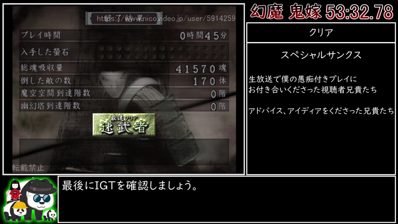 <span style="font-size: 24px;">色々言いたいことはありますが初投稿です。</span><br><br>2020/06/09にニコニコ生放送中に記録しました。<br>改善の余地はありまくりますが、ちょっぴりやる気が湧かないです。<br>ちなみに、PS4の鬼武者HDだと、現在59分38秒が世界記録です。⇒<a href="https://www.nicovideo.jp/watch/sm36917130" class="watch">sm36917130</a><br><br>【プレイ環境】<br>Xbox 360 実機<br>Xbox 360 ワイヤレスコントローラ―<br><br>前⇒<a href="https://www.nicovideo.jp/watch/sm37083959" class="watch">sm37083959</a> 【<a href="https://www.nicovideo.jp/mylist/68668186" target="_blank" rel="noopener">mylist/68668186</a>】 <br>鬼武者シリーズRTA【<span style="color: #262626; font-size: 13px;"><a href="https://www.nicovideo.jp/mylist/65679523" target="_blank" rel="noopener">mylist/65679523</a></span>】