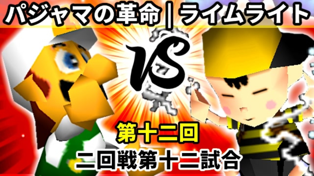 <span style="color: rgba(0, 0, 0, 0.87); font-size: 15px;">新時代の光明、ÅライムライトÅ登場!<br>※どちらが勝つかアンケ結果(Twitter調べ) <br>パジャマの革命家(LU) 32% VS ÅライムライトÅ(NE) 68%</span><br><br><span style="color: #0000ff; font-size: 13px;">※スマブラCPUトナメ実況wiki→</span> <a href="https://wiki3.jp/64cpu_P" target="_blank" rel="noopener nofollow">https://wiki3.jp/64cpu_P</a><br><br><span style="color: #ff0000; font-size: 24px;"><strong>次→</strong></span>【<a href="https://www.nicovideo.jp/watch/sm37136105" class="watch">sm37136105</a><span style="color: rgba(0, 0, 0, 0.87); font-size: 15px;">】※毎日投稿</span><br><br>前【<a href="https://www.nicovideo.jp/watch/sm37126007" class="watch">sm37126007</a>】 一回戦第一試合<span style="color: rgba(0, 0, 0, 0.87); font-size: 15px;">【</span><a href="https://www.nicovideo.jp/watch/sm36983765" class="watch">sm36983765</a><span style="color: rgba(0, 0, 0, 0.87); font-size: 15px;">】</span><br><span style="color: #ff0000; font-size: 14px;"><strong>【第十二回】64スマブラCPUトナメマイリスト</strong></span><span style="color: #000000; font-size: 14px;">【</span><a href="https://www.nicovideo.jp/mylist/68523077" target="_blank" rel="noopener">mylist/68523077</a><span style="color: #000000; font-size: 14px;">】</span><br>スマブラCPUトナメ実況part1まとめ【<a href="https://www.nicovideo.jp/mylist/60846861" target="_blank" rel="noopener">mylist/60846861</a>】<br>その他シリーズ【<a href="https://www.nicovideo.jp/mylist/12965027" target="_blank" rel="noopener">mylist/12965027</a>】<br><br><span style="color: #00bfff; font-size: 13px;"><strong>Twitter</strong></span>【<a href="https://twitter.com/niconicopppppp" target="_blank" rel="noopener nofollow">https://twitter.com/niconicopppppp</a> 】<br><span style="color: #ff4500; font-size: 13px;"><strong>チャンネル</strong></span>【<a href="https://ch.nicovideo.jp/p-desu" target="_blank" rel="noopener">ch.nicovideo.jp/p-desu</a>】