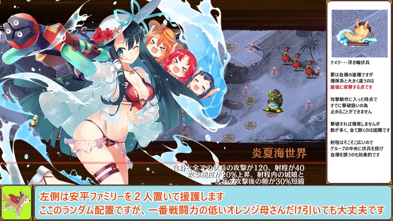 【城プロRE】ぱっかーんしやがれ! ~絶弐難~ 周回攻略になります<br><br>なるべく再配置や空蝉の操作を無くしたいなぁ、で粘ったらこんな形になりました<br>かなり難しいマップだったので、たまにはこんなのもありかなと<br><br>城プロ投稿動画一覧 <a href="https://www.nicovideo.jp/mylist/62955574" target="_blank" rel="noopener">mylist/62955574</a><br><br>今週の復刻<br>盛夏の島へめんそーれ! 絶壱難:<a href="https://www.nicovideo.jp/watch/sm35471650" class="watch">sm35471650</a> 絶弐難:<a href="https://www.nicovideo.jp/watch/sm35502132" class="watch">sm35502132</a><br>三湖に交わる仮初の絆 絶弐難:<a href="https://www.nicovideo.jp/watch/sm33728060" class="watch">sm33728060</a><br><br>追記①:広告ありがとうございます!水の高難度はエリュちゃんに頼りがち・・・<br>追記②:2波開幕がオレンジ母さんの場合、即置かないと結構際どいです<br> 枠に余りはあるので、保険の差し込み役がいると安全だと思います