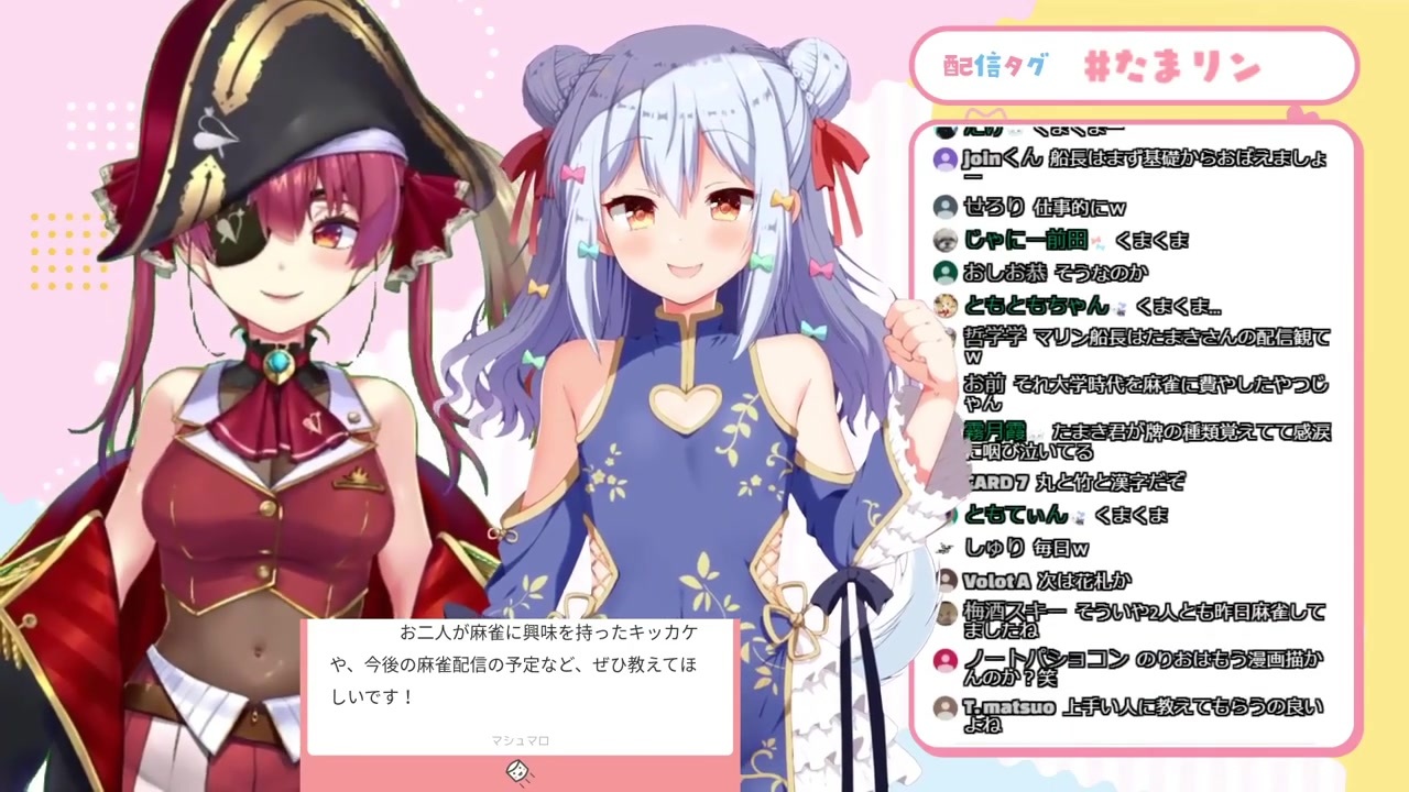 元動画<br>【宝鐘マリン】コスプレ女海賊襲来!?シナジーおばさんって魔剤?たま×リン シナジー対談!!【犬山たまき】#たまリン<br><a href="https://www.youtube.com/watch?v=mkXMbsgEXwU" target="_blank" rel="noopener nofollow">https://www.youtube.com/watch?v=mkXMbsgEXwU</a><br><br>関連動画<br>【雀魂】教えて!悲しき麻雀マシーン楠栞桜師匠!初心者麻雀講座!!【楠栞桜/犬山たまき】#たまくす<br><a href="https://www.youtube.com/watch?v=xfXPD5evMAA" target="_blank" rel="noopener nofollow">https://www.youtube.com/watch?v=xfXPD5evMAA</a><br>【雀魂】四暗刻を常に狙っている船長VSぺこら先生【ホロライブ/宝鐘マリン・兎田ぺこら】<br><a href="https://www.youtube.com/watch?v=sKBEpcBf9eA" target="_blank" rel="noopener nofollow">https://www.youtube.com/watch?v=sKBEpcBf9eA</a><br><br>犬山たまき<br><a href="https://www.youtube.com/channel/UC8NZiqKx6fsDT3AVcMiVFyA" target="_blank" rel="noopener nofollow">https://www.youtube.com/channel/UC8NZiqKx6fsDT3AVcMiVFyA</a><br>宝鐘マリン<br><a href="https://www.youtube.com/channel/UCCzUftO8KOVkV4wQG1vkUvg" target="_blank" rel="noopener nofollow">https://www.youtube.com/channel/UCCzUftO8KOVkV4wQG1vkUvg</a><br>楠栞桜<br><a href="https://www.youtube.com/c/KusunokiSio" target="_blank" rel="noopener nofollow">https://www.youtube.com/c/KusunokiSio</a><br><br>くま=のりプロ所属の熊谷タクマ