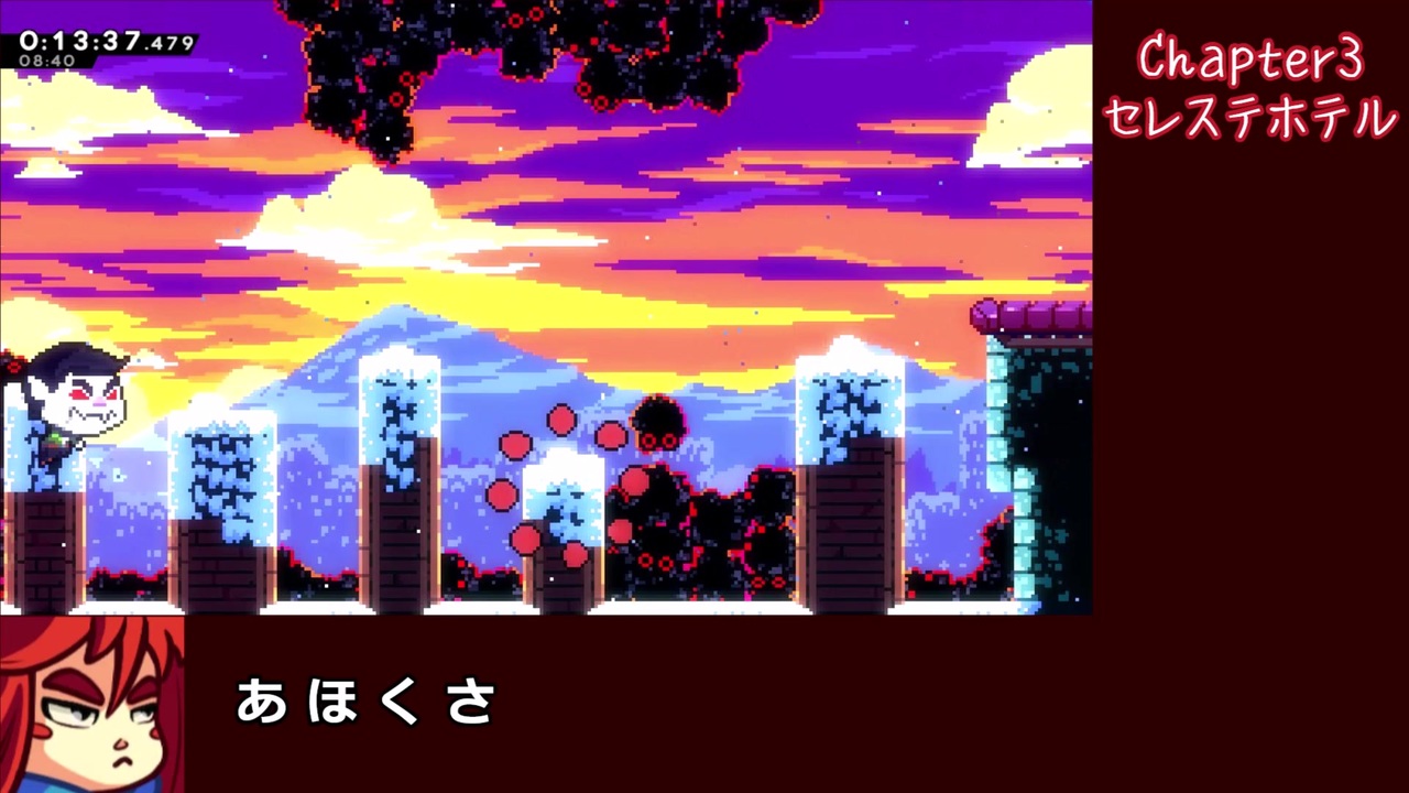 (ガチ勢では)ないです。(あっない……)<br><br>後半→<a href="https://www.nicovideo.jp/watch/sm37185043" class="watch">sm37185043</a><br>機種:PC(Steam)<br>バージョン:1.3.1.2<br>ゲームパッド:Switchプロコン(HORI製)<br>Speedrun.com(投稿時916位):<a href="https://www.speedrun.com/celeste/run/y82koqny" target="_blank" rel="noopener nofollow">https://www.speedrun.com/celeste/run/y82koqny</a><br>引用したChapter1 WR兄貴の走り:<a href="https://www.youtube.com/watch?v=7ZQsDAFL-sI&feature" target="_blank" rel="noopener nofollow">https://www.youtube.com/watch?v=7ZQsDAFL-sI&feature</a><br>用語集:<a href="https://celestegame.fandom.com/wiki/Moves" target="_blank" rel="noopener nofollow">https://celestegame.fandom.com/wiki/Moves</a>