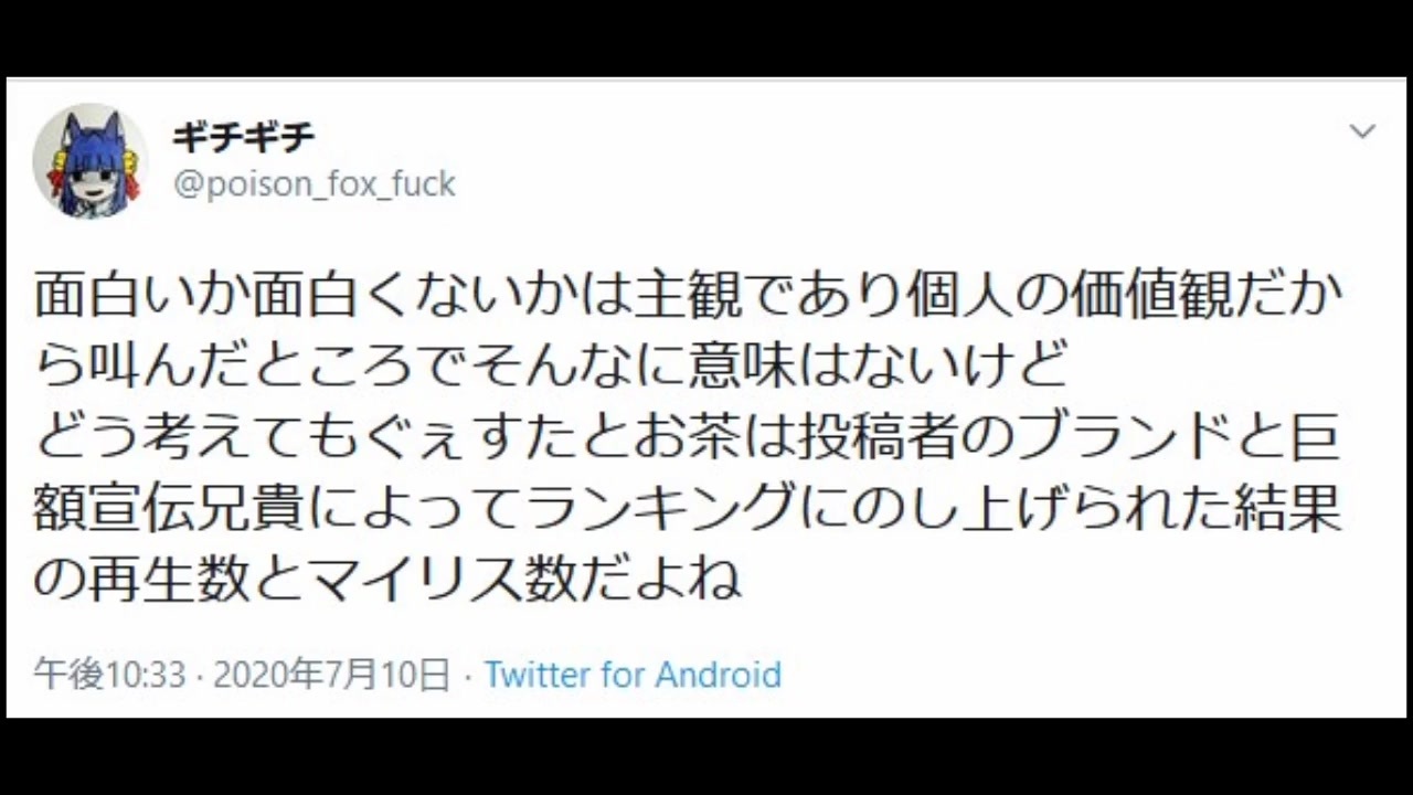 | 番号 | 総合順位 | ポイント | ジャンル順位 | カテゴリ | 再生順位 | 再生数 | コメント順位 | コメント数 | マイリスト順位 | マイリスト数 | いいね順位 | いいね数 |