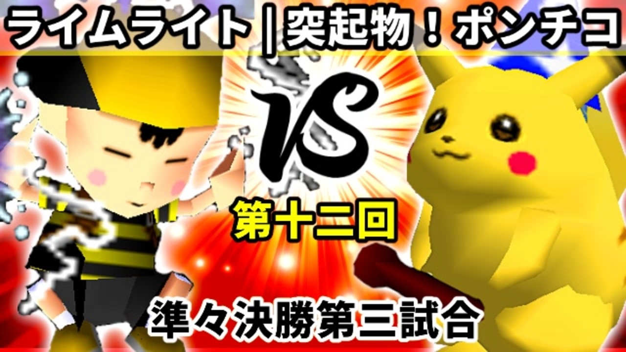 <span style="color: rgba(0, 0, 0, 0.87); font-size: 15px;">ライムライトのチ〇ポコ絶対可愛い<br>※どちらが勝つかアンケ結果(Twitter調べ) <br>ÅライムライトÅ(NE) 47% VS 突起物!ポンチコ(PI) 53%</span><br><br><span style="color: #0000ff; font-size: 13px;">※スマブラCPUトナメ実況wiki→</span> <a href="https://wiki3.jp/64cpu_P" target="_blank" rel="noopener nofollow">https://wiki3.jp/64cpu_P</a><br><br><span style="color: #ff0000; font-size: 24px;"><strong>次→</strong></span>【<a href="https://www.nicovideo.jp/watch/sm37212942" class="watch">sm37212942</a><span style="color: rgba(0, 0, 0, 0.87); font-size: 15px;">】※毎日投稿</span><br><br>前【<a href="https://www.nicovideo.jp/watch/sm37197726" class="watch">sm37197726</a>】 一回戦第一試合<span style="color: rgba(0, 0, 0, 0.87); font-size: 15px;">【</span><a href="https://www.nicovideo.jp/watch/sm36983765" class="watch">sm36983765</a><span style="color: rgba(0, 0, 0, 0.87); font-size: 15px;">】</span><br><span style="color: #ff0000; font-size: 14px;"><strong>【第十二回】64スマブラCPUトナメマイリスト</strong></span><span style="color: #000000; font-size: 14px;">【</span><a href="https://www.nicovideo.jp/mylist/68523077" target="_blank" rel="noopener">mylist/68523077</a><span style="color: #000000; font-size: 14px;">】</span><br>スマブラCPUトナメ実況part1まとめ【<a href="https://www.nicovideo.jp/mylist/60846861" target="_blank" rel="noopener">mylist/60846861</a>】<br>その他シリーズ【<a href="https://www.nicovideo.jp/mylist/12965027" target="_blank" rel="noopener">mylist/12965027</a>】<br><br><span style="color: #00bfff; font-size: 13px;"><strong>Twitter</strong></span>【<a href="https://twitter.com/niconicopppppp" target="_blank" rel="noopener nofollow">https://twitter.com/niconicopppppp</a> 】<br><span style="color: #ff4500; font-size: 13px;"><strong>チャンネル</strong></span>【<a href="https://ch.nicovideo.jp/p-desu" target="_blank" rel="noopener">ch.nicovideo.jp/p-desu</a>】
