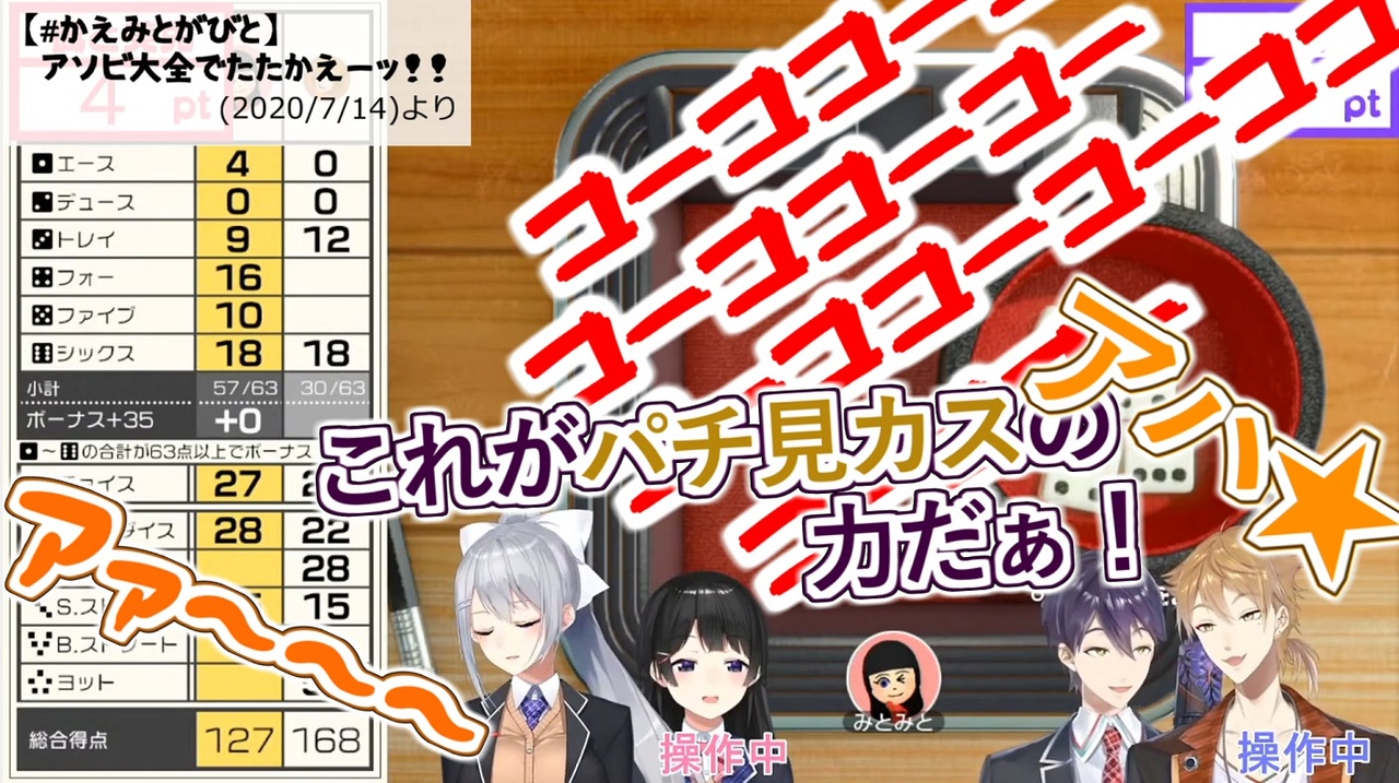 全編最高なのでぜひ本編をご覧ください!<br>月ノ美兎 <a href="https://www.youtube.com/channel/UCD-miitqNY3nyukJ4Fnf4_A?sub_confirmation=1" target="_blank" rel="noopener nofollow">https://www.youtube.com/channel/UCD-miitqNY3nyukJ4Fnf4_A?sub_confirmation=1</a><br>樋口楓 <a href="https://www.youtube.com/channel/UCsg-YqdqQ-KFF0LNk23BY4A?sub_confirmation=1" target="_blank" rel="noopener nofollow">https://www.youtube.com/channel/UCsg-YqdqQ-KFF0LNk23BY4A?sub_confirmation=1</a><br>剣持刀也 <a href="https://www.youtube.com/channel/UCv1fFr156jc65EMiLbaLImw?sub_confirmation=1" target="_blank" rel="noopener nofollow">https://www.youtube.com/channel/UCv1fFr156jc65EMiLbaLImw?sub_confirmation=1</a><br>伏見ガク <a href="https://www.youtube.com/channel/UCXU7YYxy_iQd3ulXyO-zC2w?sub_confirmation=1" target="_blank" rel="noopener nofollow">https://www.youtube.com/channel/UCXU7YYxy_iQd3ulXyO-zC2w?sub_confirmation=1</a><br><br>▼元動画<br>【#かえみとがびと】アソビ大全でたたかえーッ!!【にじさんじ】(2020/7/14)<br><a href="https://www.youtube.com/watch?v=PEoUnyz-PZs" target="_blank" rel="noopener nofollow">https://www.youtube.com/watch?v=PEoUnyz-PZs</a><br>▼該当箇所(50:34~)<br><a href="https://www.youtube.com/watch?v=PEoUnyz-PZs&feature=youtu.be&t=3034" target="_blank" rel="noopener nofollow">https://www.youtube.com/watch?v=PEoUnyz-PZs&feature=youtu.be&t=3034</a>