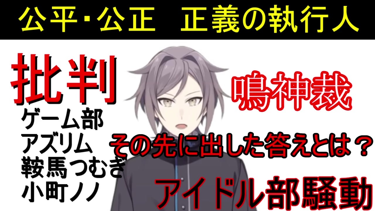 <span style="color: #000000; font-size: 18px;"><strong>アイドル部騒動の考察</strong></span><br><span style="color: #000000; font-size: 14px;">「1章」:</span><span style="color: #006699; font-size: 14px;"><a href="https://www.nicovideo.jp/watch/sm37344008" target="_blank" rel="noopener nofollow">https://www.nicovideo.jp/watch/sm37344008</a></span><br><span style="color: #000000; font-size: 14px;">「2章」:</span><span style="color: #006699; font-size: 14px;"><a href="https://www.nicovideo.jp/watch/sm37343823" target="_blank" rel="noopener nofollow">https://www.nicovideo.jp/watch/sm37343823</a></span><br><span style="color: #000000; font-size: 14px;">「3章」:制作中<br>「補足」:</span><span style="color: #006699; font-size: 14px;"><a href="https://www.nicovideo.jp/watch/sm37325174" target="_blank" rel="noopener nofollow">https://www.nicovideo.jp/watch/sm37325174</a></span><br><span style="color: #006699;"> :当動画</span><br><span style="color: #000000; font-size: 14px;">「4章」:当動画<br>「5章」:制作中(最終章の予定)</span><br><br><span style="font-size: 14px;">「元アイドル部所属の夜桜たま」に関連する鳴神裁についての疑惑。</span><br><br>アイドル部騒動の時は毎動画で意見が変わり、今まで投資家目線がどうとか言ったりして上から目線で突っ込みいれて楽しそうに貶めてたけど、騒動の際は何もかも<span style="font-size: 24px;"><strong>全スルー</strong></span>。<br>それでいて、よくわからないカルロピノの配信に速攻で反応して翌日動画出してブチギレ。<br><br>youtube版:<a href="https://www.youtube.com/watch?v=dGUMiaXeBng" target="_blank" rel="noopener nofollow">https://www.youtube.com/watch?v=dGUMiaXeBng</a><br>twitter(削除して欲しいなら):<a href="https://twitter.com/home?lang=ja" target="_blank" rel="noopener nofollow">https://twitter.com/home?lang=ja</a>