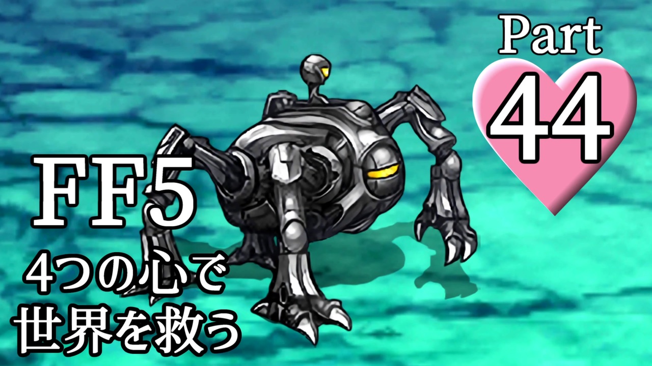 いやー超大物にふさわしい、困難で長い戦いになりましたね(編集時間が)。<br><br>バッツは風、レナは水、ファリスは火、クルルは土のクリスタルのかけらしか使えない縛りです。<br><br>Part 44は超ボス・オメガとの戦い。なんで先にやるのかって?通り道にいたのなら相手して当然でしょう(孤島の神殿の宝箱から目をそらしながら)!<br><br><a href="#" class="seekTime" data-seekTime="0:39" onclick="seekNicoPlayer('#0:39'); return false;">#0:39</a> オメガ解説<br><a href="#" class="seekTime" data-seekTime="5:56" onclick="seekNicoPlayer('#5:56'); return false;">#5:56</a> オメガ戦<br><a href="#" class="seekTime" data-seekTime="11:59" onclick="seekNicoPlayer('#11:59'); return false;">#11:59</a> おまけ(コメント返し)<br><br><a href="https://www.nicovideo.jp/watch/sm37113093" class="watch">sm37113093</a> ←前 次→ <a href="https://www.nicovideo.jp/watch/sm37363198" class="watch">sm37363198</a><br><br>Part 1:<a href="https://www.nicovideo.jp/watch/sm33152142" class="watch">sm33152142</a><br>一覧:<a href="https://www.nicovideo.jp/mylist/61912642" target="_blank" rel="noopener">mylist/61912642</a><br>詳しい攻略条件や解説(ブロマガ):<a href="https://ch.nicovideo.jp/article/ar1528756" target="_blank" rel="noopener">ar1528756</a><br><br>動画の進捗やこぼれ話をつぶやいてます:<a href="https://twitter.com/NicopedianK" target="_blank" rel="noopener nofollow">https://twitter.com/NicopedianK</a><br><br>いつもどおり市場を埋め尽くしてくださる方を募集してます。密かな楽しみです。<br><br>使用させていただいている主な素材:<br>しのびぃ~様:紲星あかり立ち絵(<a href="https://seiga.nicovideo.jp/seiga/im7682678" target="_blank" rel="noopener">im7682678</a>)、結月ゆかり立ち絵(<a href="https://seiga.nicovideo.jp/seiga/im5349056" target="_blank" rel="noopener">im5349056</a>)<br>華音3R様:紙素材(<a href="https://commons.nicovideo.jp/works/nc155446" target="_blank" rel="noopener">nc155446</a>、<a href="https://commons.nicovideo.jp/works/nc175857" target="_blank" rel="noopener">nc175857</a>)<br>しし/りっちゃん様:AviUtl用VSTホストプラグイン(<a href="https://www.nicovideo.jp/watch/sm29926034" class="watch">sm29926034</a>)<br><br>その他の素材は動画の最後とコンテンツツリーにて紹介。<br>(※素材は切り抜き、色調整、その他の改変を利用規約の範囲内でしている場合があります)