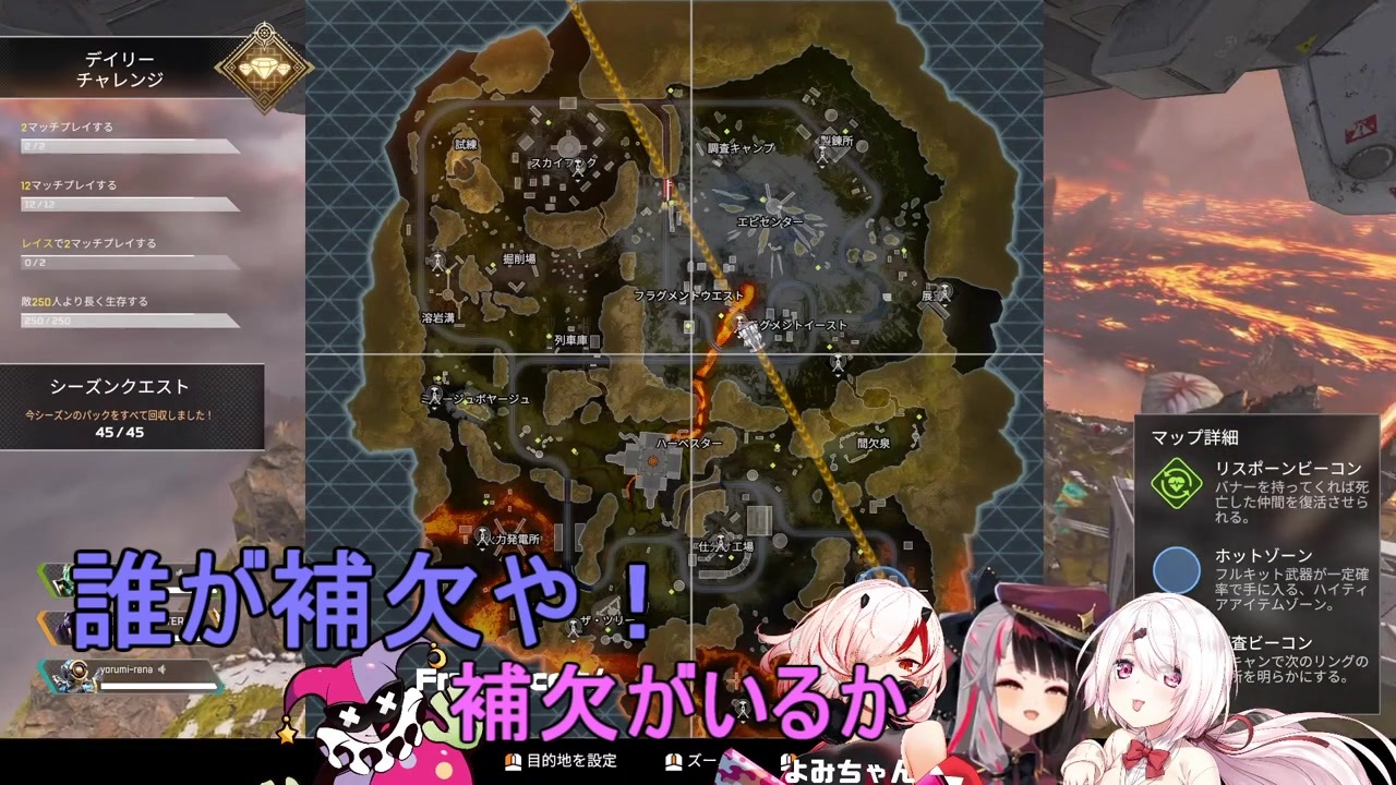 補欠:<span style="color: #030303; font-size: 14px;">Franciscoさん</span><br><span style="color: #000000; font-size: 14px;">エース級のスター:すももさん</span><br><span style="color: #030303; font-size: 14px;">生徒:椎名唯華さん、夜見れなさん、現よみさん(不在)</span><br><br>声のボリュームに差があるので聞き取りにくいかもと思った箇所と一部気まぐれで字幕付けています<br>前編<a href="https://www.nicovideo.jp/watch/sm37293908" class="watch">sm37293908</a><br><br>チャンネル:椎名唯華さん <a href="https://www.youtube.com/channel/UC_4tXjqecqox5Uc05ncxpxg" target="_blank" rel="noopener nofollow">https://www.youtube.com/channel/UC_4tXjqecqox5Uc05ncxpxg</a><br>元動画(夜見れなさんのチャンネル):<a href="https://www.youtube.com/watch?v=jzAe6ANR0wA" target="_blank" rel="noopener nofollow">https://www.youtube.com/watch?v=jzAe6ANR0wA</a>