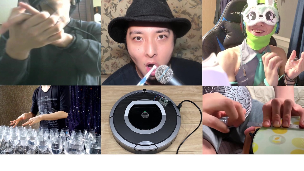 5年ぶりぶり~~~~<br><br>あべし:手おなら(Hands fart)<br><a href="https://www.nicovideo.jp/mylist/8443709" target="_blank" rel="noopener">mylist/8443709</a><br>Twitter:<a href="https://twitter.com/abeshi_is_dead" target="_blank" rel="noopener nofollow">https://twitter.com/abeshi_is_dead</a><br>YouTube:<a href="https://www.youtube.com/channel/UCRESiUJj5MfIFnJF6jGJvOg" target="_blank" rel="noopener nofollow">https://www.youtube.com/channel/UCRESiUJj5MfIFnJF6jGJvOg</a><br><br>ケロリン:ガチャポン、ガシャポン、歯(Capsule Toy)<br><a href="https://www.nicovideo.jp/mylist/19113706" target="_blank" rel="noopener">mylist/19113706</a><br>Twitter:<a href="https://twitter.com/kerorinkerorin" target="_blank" rel="noopener nofollow">https://twitter.com/kerorinkerorin</a><br>YouTube:<a href="https://www.youtube.com/user/kerorin2525" target="_blank" rel="noopener nofollow">https://www.youtube.com/user/kerorin2525</a><br><br>ヤスくん殿下:グラスハープ(Glass harp)<br><a href="https://www.nicovideo.jp/mylist/25850674" target="_blank" rel="noopener">mylist/25850674</a><br>Twitter:<a href="https://twitter.com/yasuyuki_glass" target="_blank" rel="noopener nofollow">https://twitter.com/yasuyuki_glass</a><br>YouTube:<a href="https://www.youtube.com/channel/UC0ARENL1jdgXIjXL5KrNWeQ" target="_blank" rel="noopener nofollow">https://www.youtube.com/channel/UC0ARENL1jdgXIjXL5KrNWeQ</a><br><br>kamoc:ルンバ(rumba)<br><a href="https://www.nicovideo.jp/mylist/40945244" target="_blank" rel="noopener">mylist/40945244</a><br>Twitter:<a href="https://twitter.com/gomihiroid" target="_blank" rel="noopener nofollow">https://twitter.com/gomihiroid</a><br>Youtube:<a href="https://www.youtube.com/channel/UCXx5R-7UVfFiJ21JAERpIAg/" target="_blank" rel="noopener nofollow">https://www.youtube.com/channel/UCXx5R-7UVfFiJ21JAERpIAg/</a><br><br>おれお:モノサシ(Ruler)<br><a href="https://www.nicovideo.jp/mylist/26896698" target="_blank" rel="noopener">mylist/26896698</a><br>Twitter:<a href="https://twitter.com/mono_oreo" target="_blank" rel="noopener nofollow">https://twitter.com/mono_oreo</a><br>YouTube:<a href="https://www.youtube.com/channel/UCZ_RYZOsb3-84_X_kZQc0jw" target="_blank" rel="noopener nofollow">https://www.youtube.com/channel/UCZ_RYZOsb3-84_X_kZQc0jw</a><br><br>雨おとこ:歯ブラシ(Toothbrush)<br><a href="https://www.nicovideo.jp/mylist/39232954" target="_blank" rel="noopener">mylist/39232954</a><br>Twitter:<a href="https://twitter.com/masaya_oyasai" target="_blank" rel="noopener nofollow">https://twitter.com/masaya_oyasai</a><br>YouTube:<a href="https://www.youtube.com/channel/UCZKSYT38slW-LNv749gFP-w" target="_blank" rel="noopener nofollow">https://www.youtube.com/channel/UCZKSYT38slW-LNv749gFP-w</a><br><br>前の合奏<a href="https://www.nicovideo.jp/watch/sm27483012" class="watch">sm27483012</a>