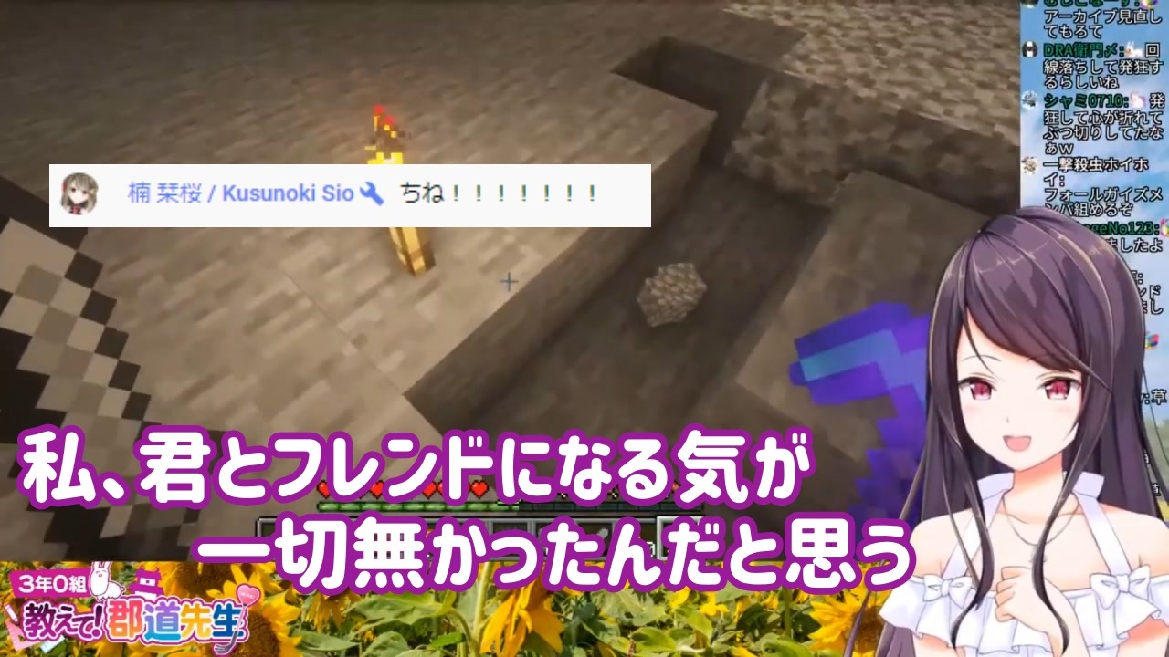 <span style="color: rgba(0, 0, 0, 0.87); font-size: 15px;">殴り合いしながらキスしてるタイプのてぇてぇ流石<br><br>元動画<br>【Minecraft】久々のマイクラをやりマスティフ。【朝活/にじさんじ郡道】<br><a href="https://www.youtube.com/watch?v=_DHqGKnZQfY&t=2916s" target="_blank" rel="noopener nofollow">https://www.youtube.com/watch?v=_DHqGKnZQfY&t=2916s</a><br><br>《その他、話題になったアーカイブ》<br>郡道、発狂フォールガイズ<br>【FALL GUYS】リスナーをふるぼっっっこで大爆笑!ゆるふわ新感覚バトロワゲー!?【にじさんじ郡道】<br><a href="https://www.youtube.com/watch?v=EIBo_c3ACiM&t=21s" target="_blank" rel="noopener nofollow">https://www.youtube.com/watch?v=EIBo_c3ACiM&t=21s</a><br>楠、マイクラエンドラ討伐RTA<br>【マイクラVer1.16】最新Verエンドラ討伐!初RTA( ᐢ˙꒳˙ᐢ )【#楠栞桜】<br><a href="https://www.youtube.com/watch?v=GCmUn8Syqdo&t=16587s" target="_blank" rel="noopener nofollow">https://www.youtube.com/watch?v=GCmUn8Syqdo&t=16587s</a><br><br>各チャンネル<br>郡道美玲<br><a href="https://www.youtube.com/channel/UCeShTCVgZyq2lsBW9QwIJcw" target="_blank" rel="noopener nofollow">https://www.youtube.com/channel/UCeShTCVgZyq2lsBW9QwIJcw</a><br>楠栞桜<br><a href="https://www.youtube.com/c/KusunokiSio/featured" target="_blank" rel="noopener nofollow">https://www.youtube.com/c/KusunokiSio/featured</a><br><br>にじさんじマイリスト</span><br><span style="color: #000000; font-size: 14px;"><a href="https://www.nicovideo.jp/mylist/68182288" target="_blank" rel="noopener">mylist/68182288</a><br>楠栞桜マイリスト<br><a href="https://www.nicovideo.jp/mylist/67967066" target="_blank" rel="noopener">mylist/67967066</a></span>