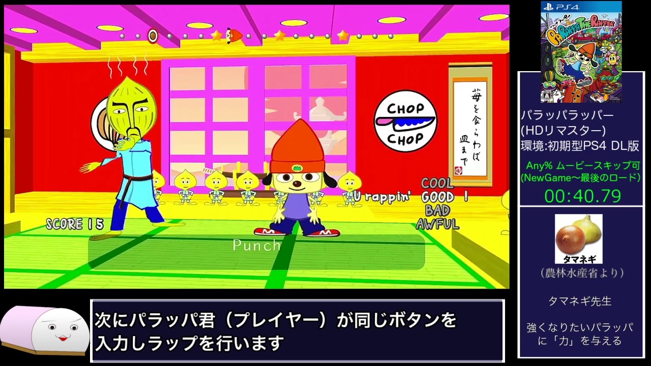 <strong>【お礼】<br>こんな競技性の薄い動画をニコニ広告していただきありがとうございます。<br>(すみません、ニコニ広告の仕様があまり分かってないのでちゃんとお礼できているか分かりませんが、お礼の気持ちだけは伝わって欲しい)</strong><br><br>biimシステムによるパラッパラッパーHDリマスター版のRTAです。speedrun.comのany%に従って計測しました。プレイ部分は強制進行のため、セーブスキップとロード時間の短さの祈祷が鍵です。<br>softalk(いわゆる、ゆっくり実況)を使用しています。<br><br>【ニコニコ投稿リスト】<br><a href="https://www.nicovideo.jp/mylist/68392211" target="_blank" rel="noopener nofollow">https://www.nicovideo.jp/mylist/68392211</a><br>【Youtubeチャンネル】<br><a href="https://www.youtube.com/channel/UCFjSsXWOl7PwqioC1aIoUHQ" target="_blank" rel="noopener nofollow">https://www.youtube.com/channel/UCFjSsXWOl7PwqioC1aIoUHQ</a><br>【Twitter】<br>@VirtualKamaboko<br><br>(エンドカード音楽:魔王魂)