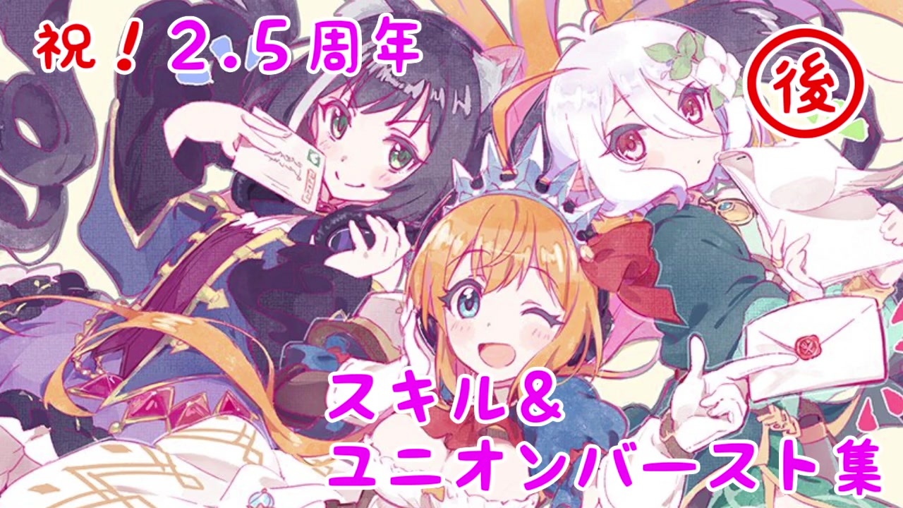 ランファとミソラの実装も待ってます<br><br>・おまけは突発的に試み始めたことなので未完成です<br> 来年に完成できると信じて<br><br>※この動画は後編になります<br>2.5周年時点での全124キャラ分+αになります(水着ジュンまで)<br>長くなりすぎたため2つの動画に分割しました<br><br>何かあれば↓twitter↓までどうぞ<br><a href="https://twitter.com/d2b_akamekill" target="_blank" rel="noopener nofollow">https://twitter.com/d2b_akamekill</a><br><br>前編→<a href="https://www.nicovideo.jp/watch/sm37362337" class="watch">sm37362337</a> 次→<a href="https://www.nicovideo.jp/watch/sm38305249" class="watch">sm38305249</a><br><br>OPEDまとめ→<a href="https://www.nicovideo.jp/watch/sm36778570" class="watch">sm36778570</a><br>旧掛け合い集→<a href="https://www.nicovideo.jp/watch/sm35425262" class="watch">sm35425262</a><br><a href="https://www.nicovideo.jp/mylist/64008256" target="_blank" rel="noopener">mylist/64008256</a>