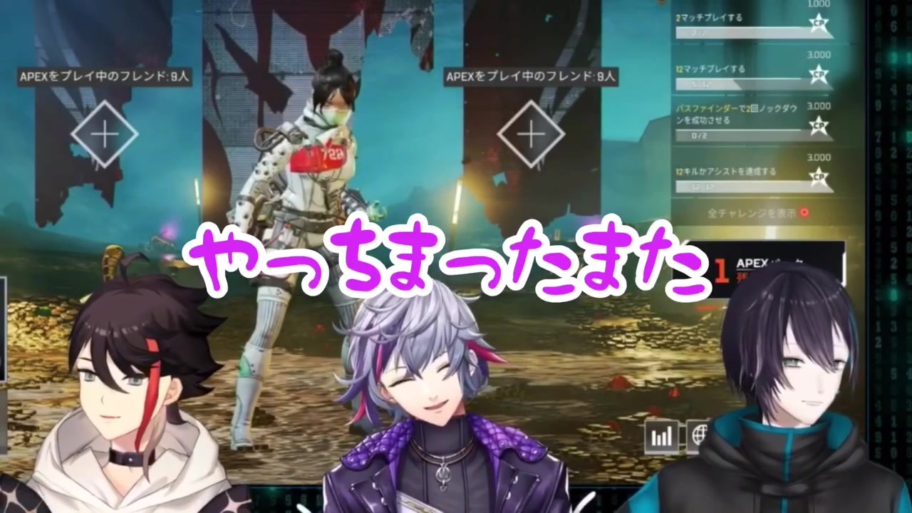 ↓見てね<br><strong>9/3 20:00〜<br>メッシャーズ出演<br>にじさんじのハッピーアワー!!</strong><br><a href="https://sp.live.nicovideo.jp/watch/lv327344155" target="_blank" rel="noopener nofollow">https://sp.live.nicovideo.jp/watch/lv327344155</a><br><br>毎度、始まったと思ったらテンポ良くボケ、綺麗にツッコミが入るのでお笑いを見てる気分になる。<br><br>まあ自分、普段お笑い見ないんですけど。<br><br><br>※敬称略<br>三枝明那<br><a href="https://www.youtube.com/channel/UCNW1Ex0r6HsWRD4LCtPwvoQ" target="_blank" rel="noopener nofollow">https://www.youtube.com/channel/UCNW1Ex0r6HsWRD4LCtPwvoQ</a><br><a href="https://twitter.com/333akina" target="_blank" rel="noopener nofollow">https://twitter.com/333akina</a><br><br>不破湊<br><a href="https://www.youtube.com/channel/UC6wvdADTJ88OfIbJYIpAaDA" target="_blank" rel="noopener nofollow">https://www.youtube.com/channel/UC6wvdADTJ88OfIbJYIpAaDA</a><br><a href="https://twitter.com/Fuwa_Minato" target="_blank" rel="noopener nofollow">https://twitter.com/Fuwa_Minato</a><br><br>黛灰<br><a href="https://www.youtube.com/channel/UCb5JxV6vKlYVknoJB8TnyYg" target="_blank" rel="noopener nofollow">https://www.youtube.com/channel/UCb5JxV6vKlYVknoJB8TnyYg</a><br><a href="https://twitter.com/mayuzumi_X" target="_blank" rel="noopener nofollow">https://twitter.com/mayuzumi_X</a><br><br>▼使用動画<br>・1<br><a href="https://www.youtube.com/watch?v=u6s3VRQUxXs&t=3592s" target="_blank" rel="noopener nofollow">https://www.youtube.com/watch?v=u6s3VRQUxXs&t=3592s</a><br>三枝明那視点<br><a href="https://www.youtube.com/watch?v=0hirH3qNuxk&t=3602s" target="_blank" rel="noopener nofollow">https://www.youtube.com/watch?v=0hirH3qNuxk&t=3602s</a><br>不破湊視点<br><a href="https://www.youtube.com/watch?v=7NqV51iqsx4&t=3608s" target="_blank" rel="noopener nofollow">https://www.youtube.com/watch?v=7NqV51iqsx4&t=3608s</a><br><br>・2<br><a href="https://www.youtube.com/watch?v=LHNiH-MoKdQ&t=65s" target="_blank" rel="noopener nofollow">https://www.youtube.com/watch?v=LHNiH-MoKdQ&t=65s</a><br>他視点なし<br><br>・3<br><a href="https://www.youtube.com/watch?v=tHIUKa4-7cM&t=10781s" target="_blank" rel="noopener nofollow">https://www.youtube.com/watch?v=tHIUKa4-7cM&t=10781s</a><br>不破湊視点<br><a href="https://www.youtube.com/watch?v=OOfGv8Pi_wM&t=3847s" target="_blank" rel="noopener nofollow">https://www.youtube.com/watch?v=OOfGv8Pi_wM&t=3847s</a><br>三枝明那視点なし<br><br>・4<br><a href="https://www.youtube.com/watch?v=4pomL3eROrw&t=2248s" target="_blank" rel="noopener nofollow">https://www.youtube.com/watch?v=4pomL3eROrw&t=2248s</a><br>三枝明那視点<br><a href="https://www.youtube.com/watch?v=LIcJjHYenqo&t=2243s" target="_blank" rel="noopener nofollow">https://www.youtube.com/watch?v=LIcJjHYenqo&t=2243s</a><br>不破湊視点<br><a href="https://www.youtube.com/watch?v=t5-apuRG3EU&t=2222s" target="_blank" rel="noopener nofollow">https://www.youtube.com/watch?v=t5-apuRG3EU&t=2222s</a>
