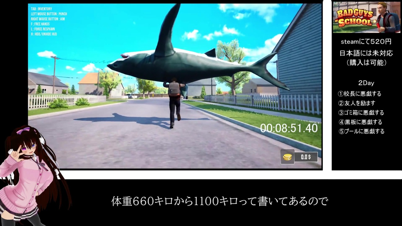 エロゲじゃないRTAは初投稿です。<br>無編集版⇒<a href="https://www.youtube.com/watch?v=YDWraFzNFxQ" target="_blank" rel="noopener nofollow">https://www.youtube.com/watch?v=YDWraFzNFxQ</a><br><br>2/2⇒<a href="https://www.nicovideo.jp/watch/sm37383135" class="watch">sm37383135</a><br><br>レギュ<br>SINGLE PLAYER選択~7日目終了後のSTART A NEW DAYクリックまで。<br><br>このゲームの初期化の仕方<br>⇒ユーザー名>AppData>Local>BadGuysatSchool>Savedの中を消す<br><br>20/08/21追記<br><span style="color: #000000; font-size: 13px;">コロッケ様・フィン・シェパード様・なちょ様・falk様・saifar様</span><br>広告ありがとうございます。<br><br>再走⇒<a href="https://www.nicovideo.jp/watch/sm37396786" class="watch">sm37396786</a><br>RTAマイリス⇒<a href="https://www.nicovideo.jp/mylist/69428960" target="_blank" rel="noopener">mylist/69428960</a>