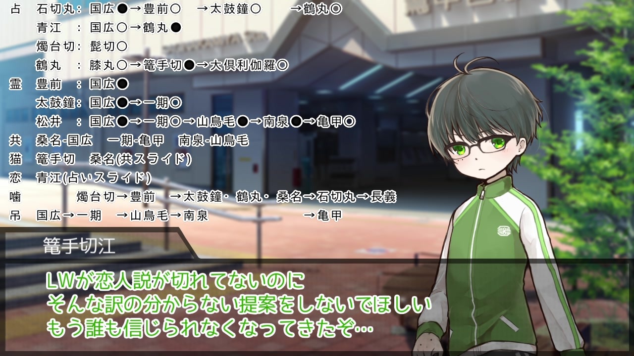 みっさん極で回復したので投稿します。<br><strong>配役:村3/占2/霊2/狩1/共2/猫1/狼4/狂信1/狐1/背1/QP1</strong><br><br>・日付ずれてね?→何個かコメもらってますが、欠けがないので1日目からスタートしてます。なので合ってます。<br><br><a href="https://www.nicovideo.jp/watch/sm37368352" class="watch">sm37368352</a>←5日目|<a href="https://www.nicovideo.jp/mylist/65368586" target="_blank" rel="noopener">mylist/65368586</a>|<span style="font-size: 16px;">最終日→<a href="https://www.nicovideo.jp/watch/sm37403291" class="watch">sm37403291</a></span><br><br />だてぐみじんろう:<a href="https://www.nicovideo.jp/series/1107" target="_blank" rel="noopener">series/1107</a><br>→考察、感想をTwitterでつぶやくときは<strong>「#だてぐみじんろう」</strong>をどうぞ!私が喜びます。<br>ジョジョ卓:<a href="https://www.nicovideo.jp/series/29049" target="_blank" rel="noopener">series/29049</a><br>ダイマ動画:<a href="https://www.nicovideo.jp/series/29054" target="_blank" rel="noopener">series/29054</a><br>無人島開発:<a href="https://www.nicovideo.jp/series/112224" target="_blank" rel="noopener">series/112224</a><br>解説動画:<a href="https://www.nicovideo.jp/series/179736" target="_blank" rel="noopener">series/179736</a>