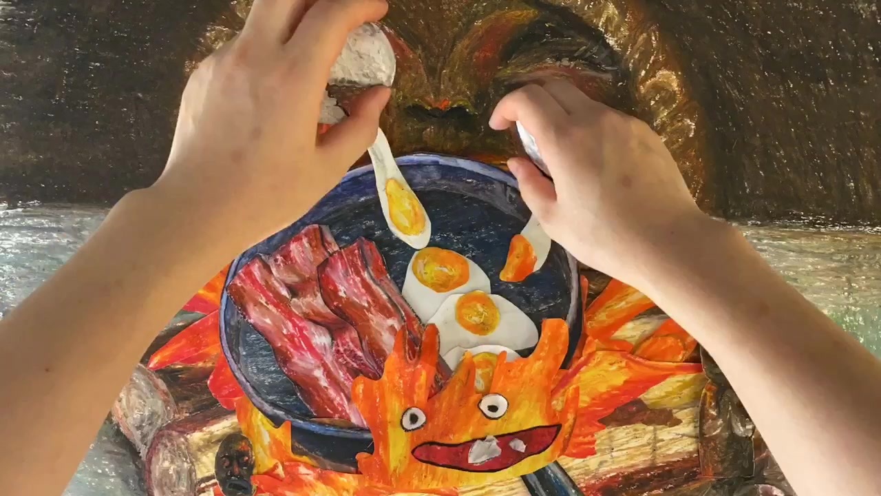 データ詳細 【コマ撮り手描き】カルシファーとベーコンエッグ再現してみた【ジブリ飯】